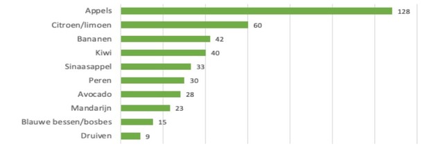 Bij fruit staan appels bovenaan, met daarna citroenen en bananen. Typische Nederlandse wintergroenten zoals spruiten en boerenkool zijn volgens de organisatie niet of nauwelijks biologisch aangetroffen.