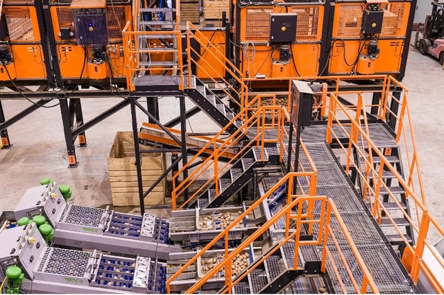 De automatische kistenlogistiek rondom het snijden vormt nu het hart van de operatie. De Fully Automatic Street van VHM bestaat uit een combinatie van Stackr, Turnr met EvenFlow, BoxFilr en opnieuw een Stackr. Met deze lijn worden kisten geleegd (Turnr+ EvenFlow), de aardappels gesneden (MCR) en dezelfde kisten weer gevuld met de BoxFilr.