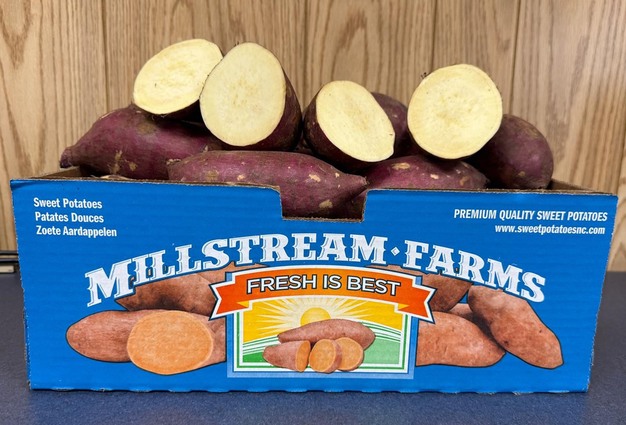 "Hetzelfde geldt voor de zoete aardappelen. Die vinden momenteel vanuit Egypte en Noord-Amerika goed hun weg. Wij krijgen vanuit Egypte de Bearegard binnen en vanuit Noord-Amerika van onze huisleverancier Millstream in Murasaki (rood-wit), oranjevlezige Convington en ook trekken we nog een paar maanden de paarsvlezige zoete aardappelen door."