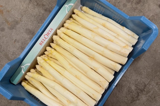 Tholen - Het aspergeseizoen is inmiddels in volle gang. Waar de volumes eerst nog beperkt waren, komt er sinds vorige week steeds meer volume op de markt. "De volumes trekken nu echt aan, maar ik ben bang dat het vanaf woensdag weer wat zal afnemen", vertelt Geert Baecke van Tino's Fruit. "Daarom heb ik vandaag meer dan 1000 kisten gekocht. Barendrecht, Venlo, Mechelen. Overal zat ik aan het maximum dat beschikbaar was."
