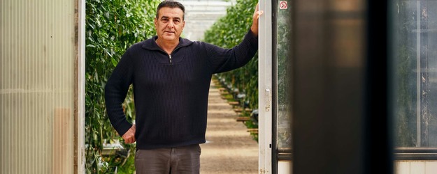 Kaya is 55 jaar oud en al bijna 18 jaar zelfstandig teler in het Limburgse Lomm. Geboren in het zuidoosten van Turkije, verhuisde hij eind jaren tachtig naar Duitsland en begon hij in 2007 zijn eigen kwekerij in Nederland. De naam - Kwekerij Arjan - is een eerbetoon aan zijn Nederlandse neef, die hem heeft geholpen met de opstart van zijn bedrijf. "In mijn familie deden we altijd al iets met groenten," vertelt hij. "We hadden een groot gezin, met 7 kinderen, en mijn vader teelde in onze achtertuin tomaten, komkommers, aubergines… alles eigenlijk. Voor onszelf en ook wat voor de verkoop. Ik hielp al mee toen ik kind was, dus dit werk is mij met de paplepel ingegoten."
