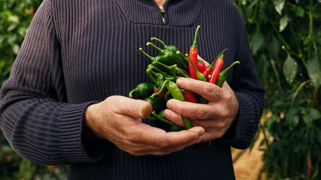 Sindsdien teelt hij op 9.000 m² rode pepers en jalapeño's. Alles biologisch, met natuurlijke bestrijders tegen ziektes. "Het geheim van een goede peper zit 'm in balans," legt hij uit. "Niet te veel water, niet te weinig. En goed letten op het licht. De computer meet dat hier. Hoe meer zon, hoe scherper de peper wordt. De plant heeft eigenlijk niet veel nodig, maar het komt vooral aan op ervaring van de teler, en heel secuur zijn met de hoeveelheid water en licht die ze krijgen."