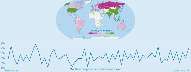 Wereldhandelsvolume met 2 procent toegenomen in januari 2026