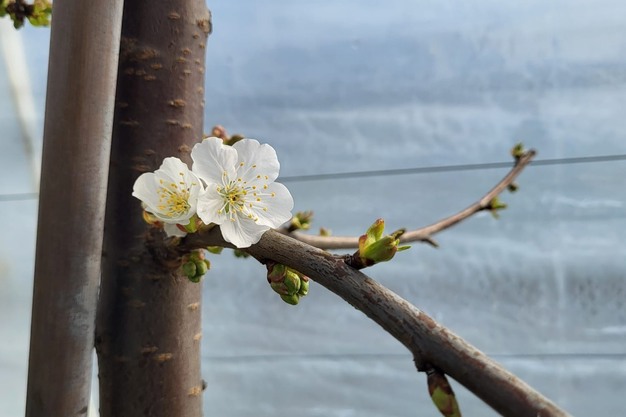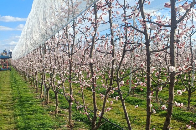 "Wij telen op 22 hectare abrikozen, waarvan de helft met plastic is afgedekt, 10 hectare kersen die volledig zijn beschermd, en 5 hectare pruimen die nog niet zijn afgedekt. Deze afdektechniek, waarin twee jaar geleden aanzienlijk is geïnvesteerd, biedt bescherming tegen regen en hagel en maakt het bovendien mogelijk om eerder op de markt te verschijnen."