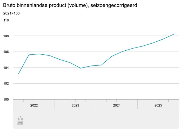 Volgens de tweede berekening van het CBS is het bruto binnenlands product (bbp) in het vierde kwartaal van 2025 met 0,5 procent gegroeid ten opzichte van het derde kwartaal van 2025. Bij de eerste berekening, die is gepubliceerd op 30 januari, kwam de groei ook uit op 0,5 procent. De tweede berekening van het bbp wordt ongeveer 85 dagen na afloop van het kwartaal gepubliceerd.
