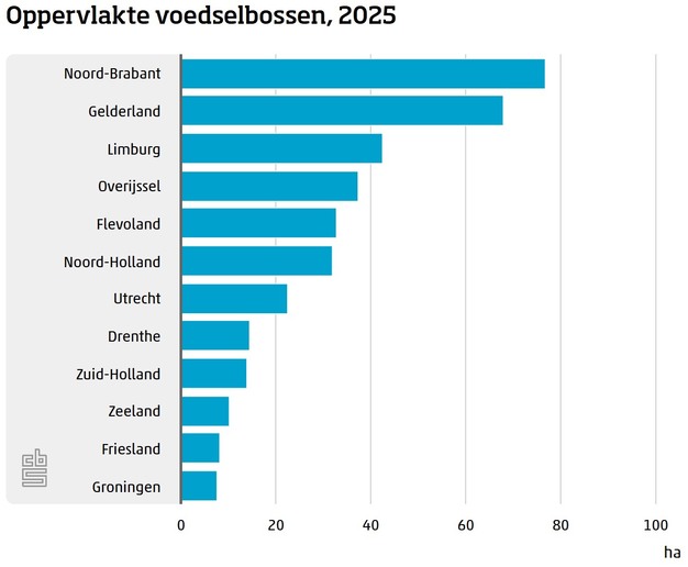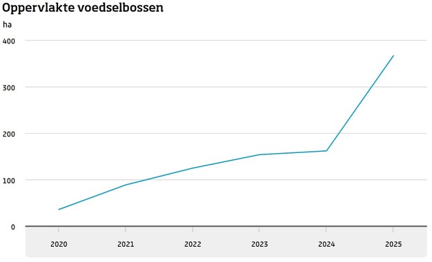 Volgens het CBS is vooral in het laatste jaar een flinke toename zichtbaar. "Het areaal voedselbossen is vergeleken met een jaar eerder verdubbeld," meldt het statistiekbureau.