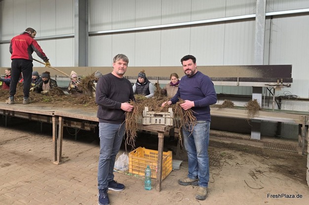De familie Willemsen teelt op totaal ongeveer 150 hectare asperges op verschillende percelen in de Duits-Nederlandse grensstreek. Daarnaast worden op circa 35 hectare aspergeplanten geteeld, vertelt André Willemsen. "Vroeger begonnen we rond half maart met de levering van onze jonge planten, maar doordat het seizoen geleidelijk vroeger is geworden, is ook de oogst naar voren geschoven en beginnen we nu al in de eerste week van maart." Net als bij verse asperges wijzen de signalen bij de vermeerdering van jonge planten duidelijk in de richting van groen. "We verwachten dit jaar een goede opbrengst."