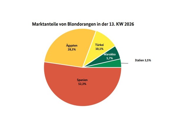 Het sinaasappelseizoen liep ten einde. De beschikbaarheid van sinaasappels nam af op de Duitse markt en ook de vraag van klanten was duidelijk afgenomen. Tegelijkertijd richtten klanten zich steeds meer op andere groenten- en fruitsoorten. Spaanse sinaasappels, met name Navelate en Lane Late, domineerden duidelijk de markt, gevolgd door Egyptische import, vooral Valencia Late. Marokkaanse en Turkse partijen vulden het assortiment aan, maar verdwenen op bepaalde momenten gedurende de week weer uit de schappen.