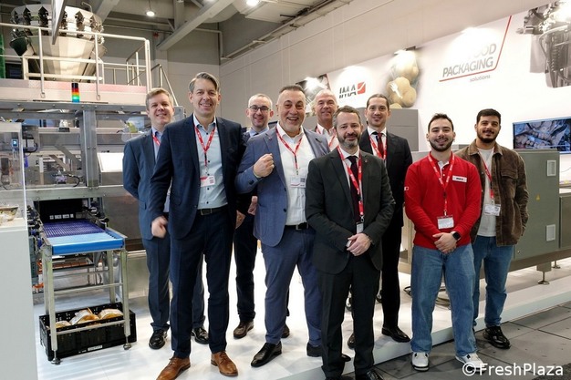 Het IMA/Ilapak-team op de Fruit Logistica dit jaar met Sener Akdem (vierde van links). Het bedrijf is al vele jaren een vaste exposant in Berlijn