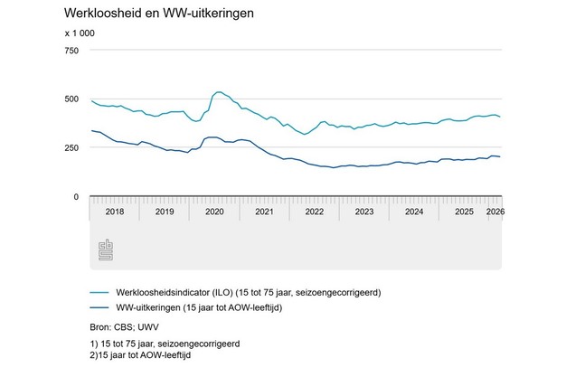 De recente cijfers wijzen op een relatief stabiele arbeidsmarkt, met beperkte maandelijkse verschuivingen. Hoewel de werkloosheid licht afneemt, blijft het aantal WW-uitkeringen op een relatief hoog niveau. De ontwikkelingen onderstrepen het belang van blijvende monitoring van zowel instroom- als uitstroomstromen op de arbeidsmarkt.