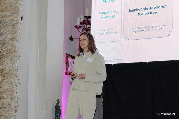 Na de plenaire discussie lichtte Marissa van Adrichem, Sustainability Manager bij Best Fresh, toe hoe een internationaal handelsbedrijf de footprint in kaart brengt. Voor een organisatie met activiteiten in teelt, handel en logistiek ligt 96% van de totale milieu-impact in de keten (Scope 3). Slechts 4% van de emissies is direct gerelateerd aan de eigen operatie en energieverbruik.