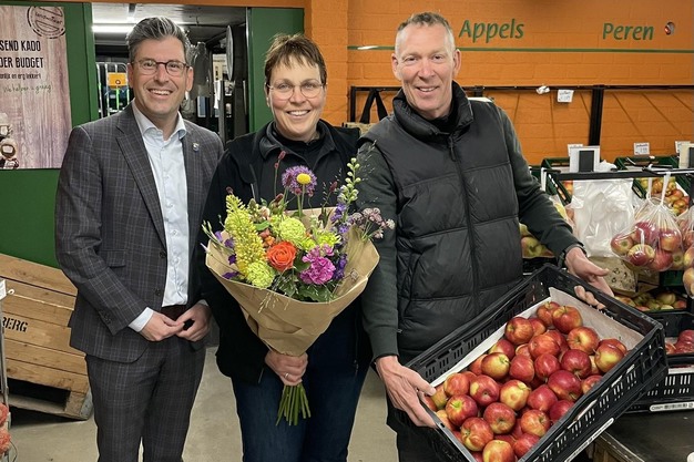 © Van Wagenberg "Al die jaren een belangrijke functie in het dorp vervuld en dat zullen de mensen gaan missen." Burgemeester Joeri Minsens van Heumen bedankte Esther en Harrie voor de ruim 35 jaar dat ze hun Landwinkel gerund hebben.