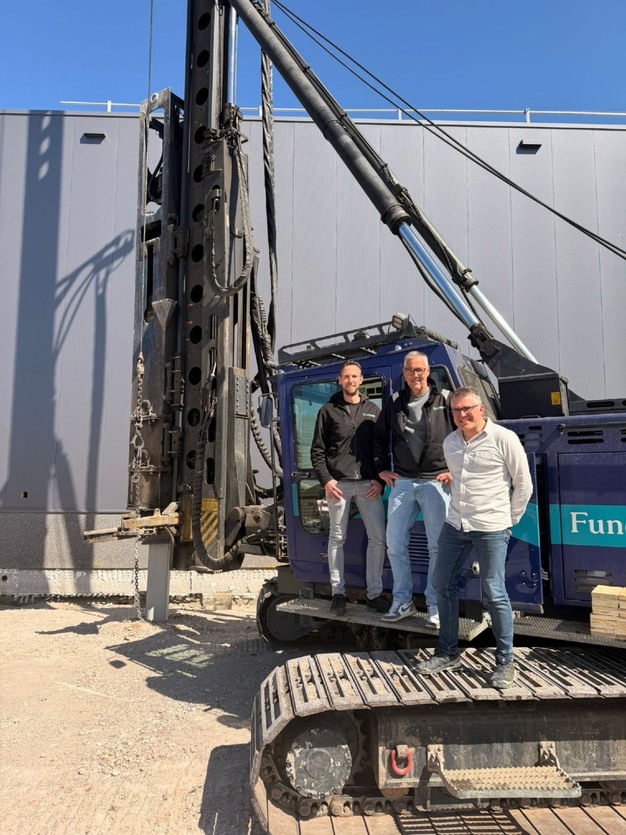 © A.N. BoekelTholen - Tussen de drukte in de handel door is donderdag de eerste paal geslagen voor de uitbreiding van het pand van A.N. Boekel in Oudkarspel. "Nog een kleine 2.400 palen te gaan en we kunnen verder met fase twee van de bouw. We zijn blij dat we van start zijn en trots op deze letterlijke mijlpaal", vertelt Joost van Wonderen.