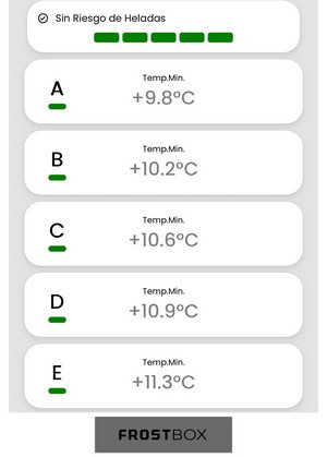 Naast de eerste analyse waarschuwt het systeem ook voor naderend gevaar. Het geeft 24 tot 48 uur van tevoren aan wanneer er vorst verwacht wordt en hoe ernstig die zal zijn. "De teler krijgt een melding op zijn telefoon, zodat hij op tijd kan handelen", aldus Usera.