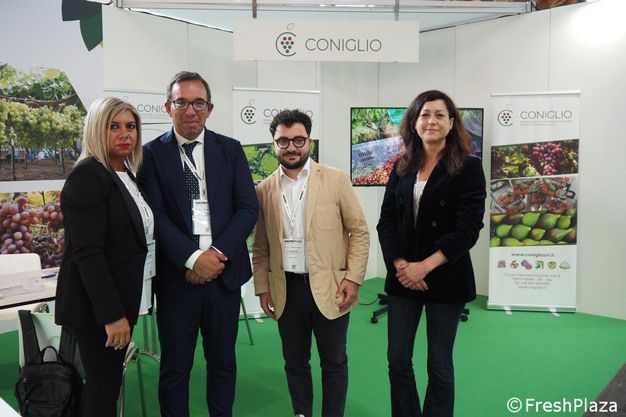 Mariarosaria Spinelli, Nicola Coniglio (eigenaar), Antonio Sportelli en Helene Finel op Macfrut 2026