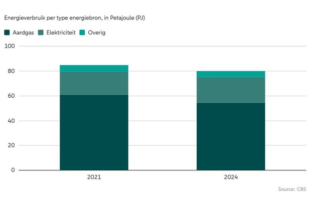 Binnen de sector is het aardgasverbruik, gecorrigeerd voor productievolumes, met 8 procent gedaald, terwijl het elektriciteitsverbruik met 12 procent is toegenomen. Bedrijven zetten daarbij in op energiebesparing en elektrificatie om het aardgasverbruik verder te verlagen.