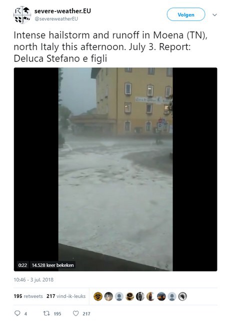Nog verder naar het zuiden werd de regio Val di Non, Braz (Trentino), op 3 juli getroffen door een hagelbui. Op beelden die op internet circuleren is op de achtergrond onder andere een appelboomgaard zonder hagelnetten te zien. Het spreekt voor zich dat in deze boomgaard de oogst beschadigd zal zijn. de huigenbuien waren wel heel lokaal. Dieper in het dal hadden telers nergens last van, al daalde het kwik wel aanzienlijk. Ook in Val di Fassa (Trentino) viel veel neerslag. Dat gebied staat niet bekend om boomgaarden, maar er is aanzienlijke schade aan de infrastructuur.
