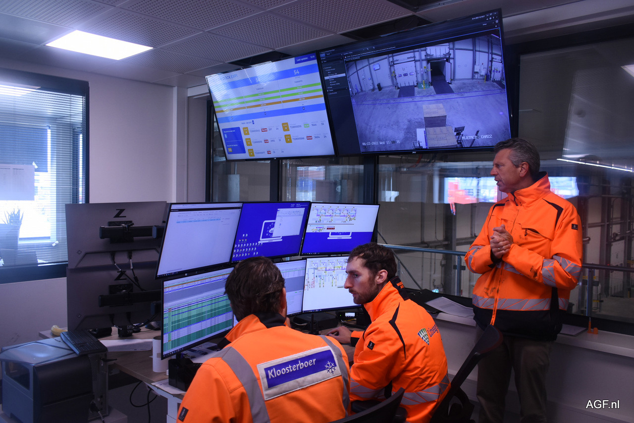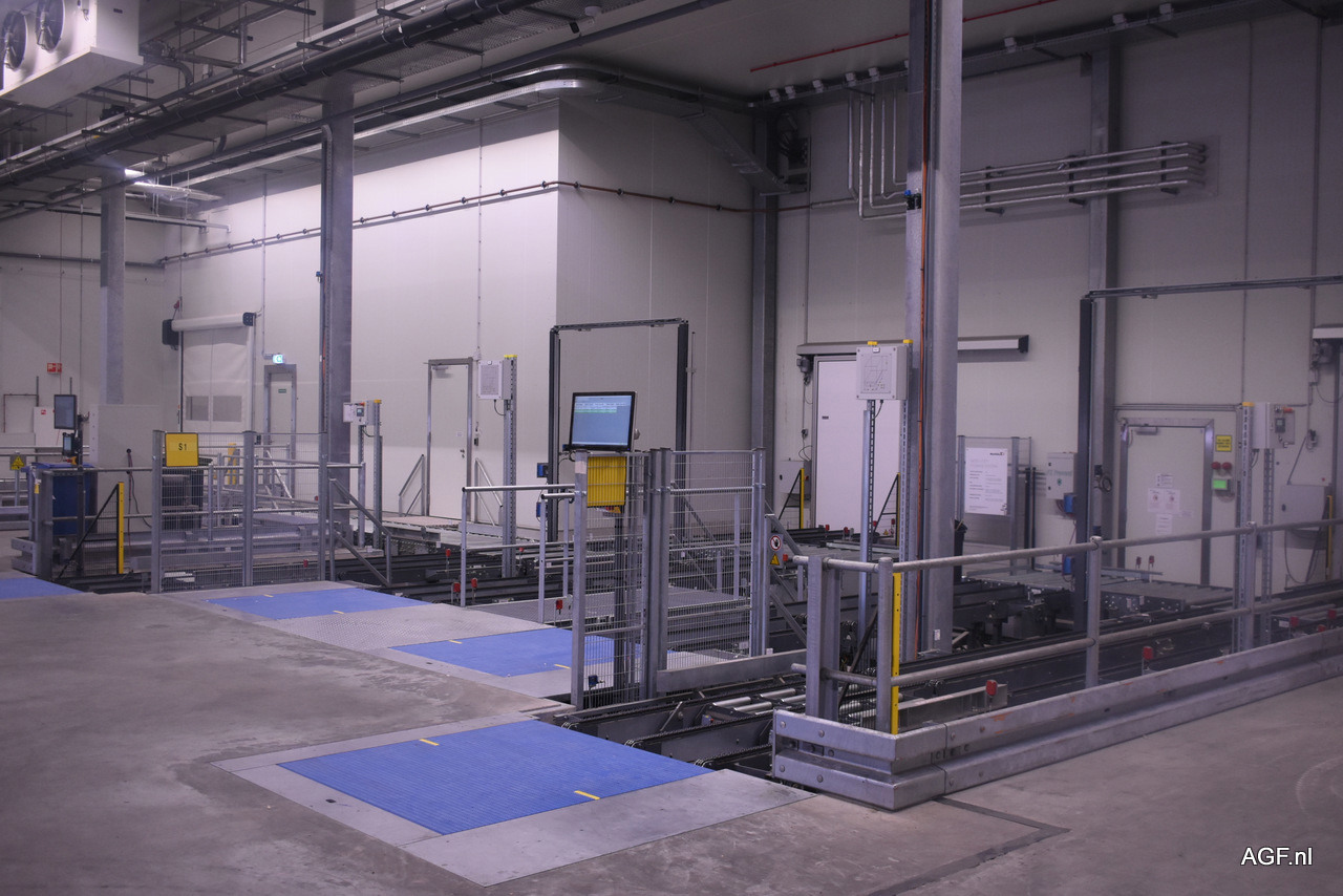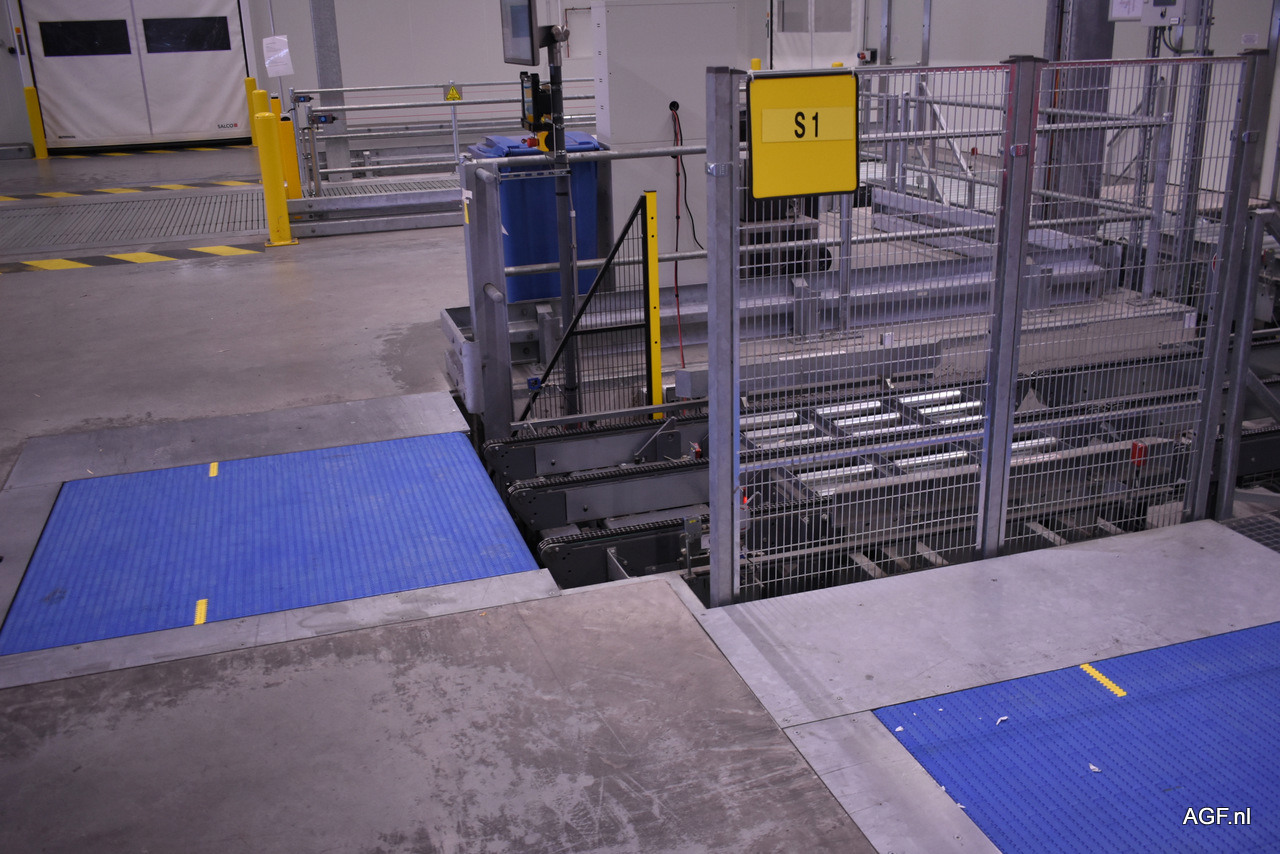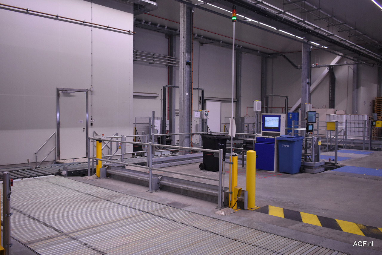 De vrachtwagens worden automatisch uitgeladen en de pallets gaan automatisch naar de achterliggende expeditieruimte