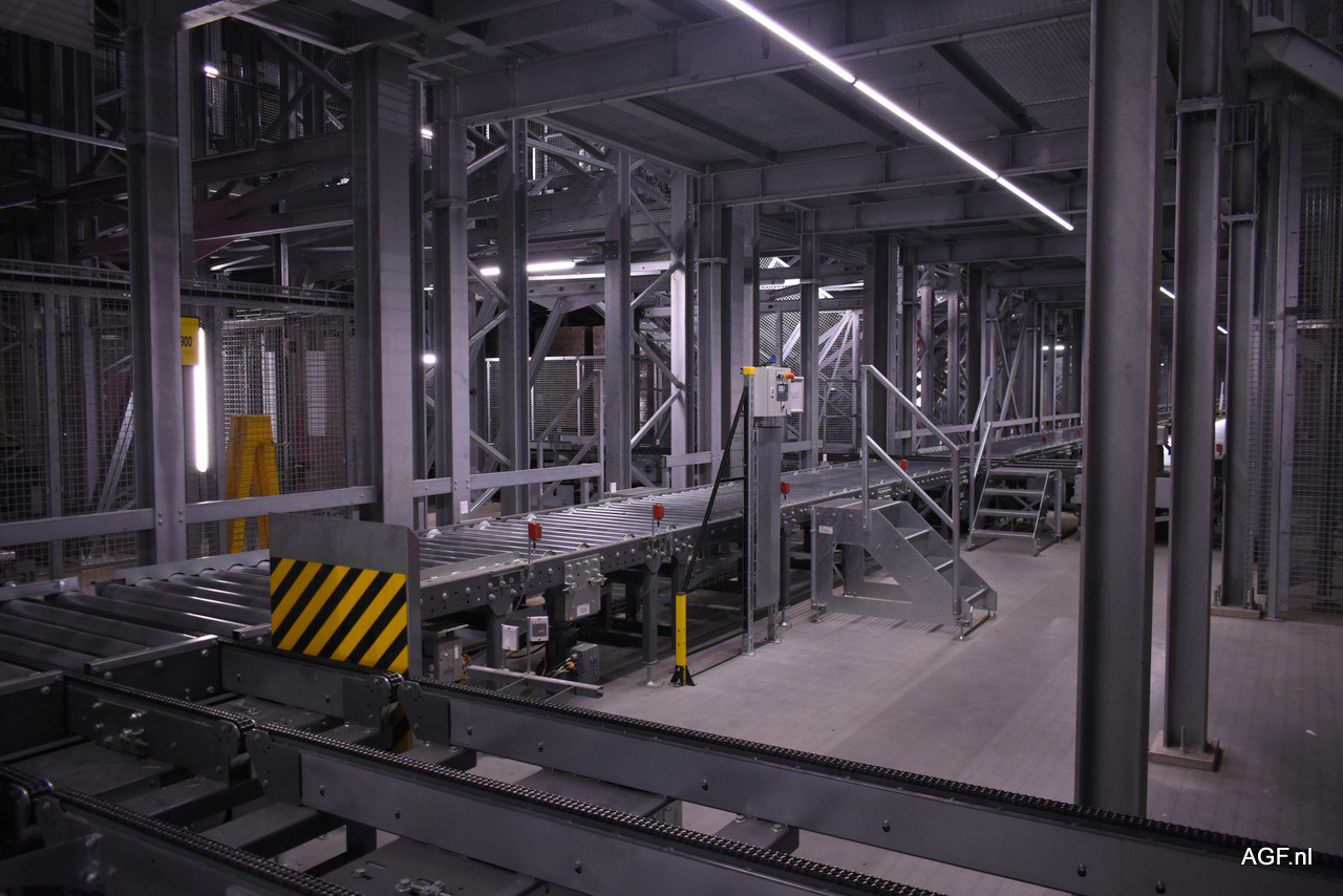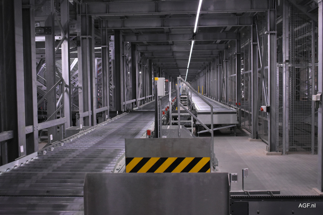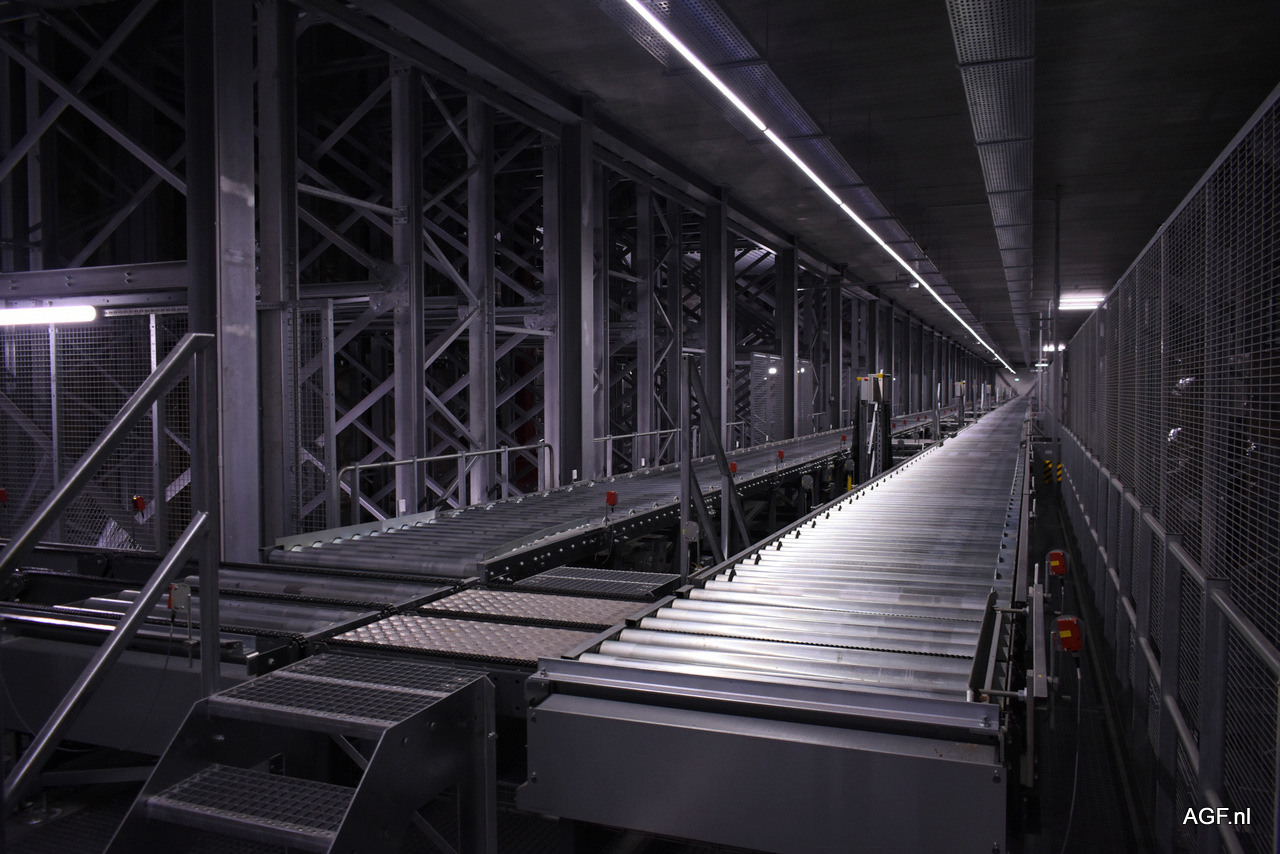 Ook in de expeditieruimte gaat alles volautomatisch over rolbanden