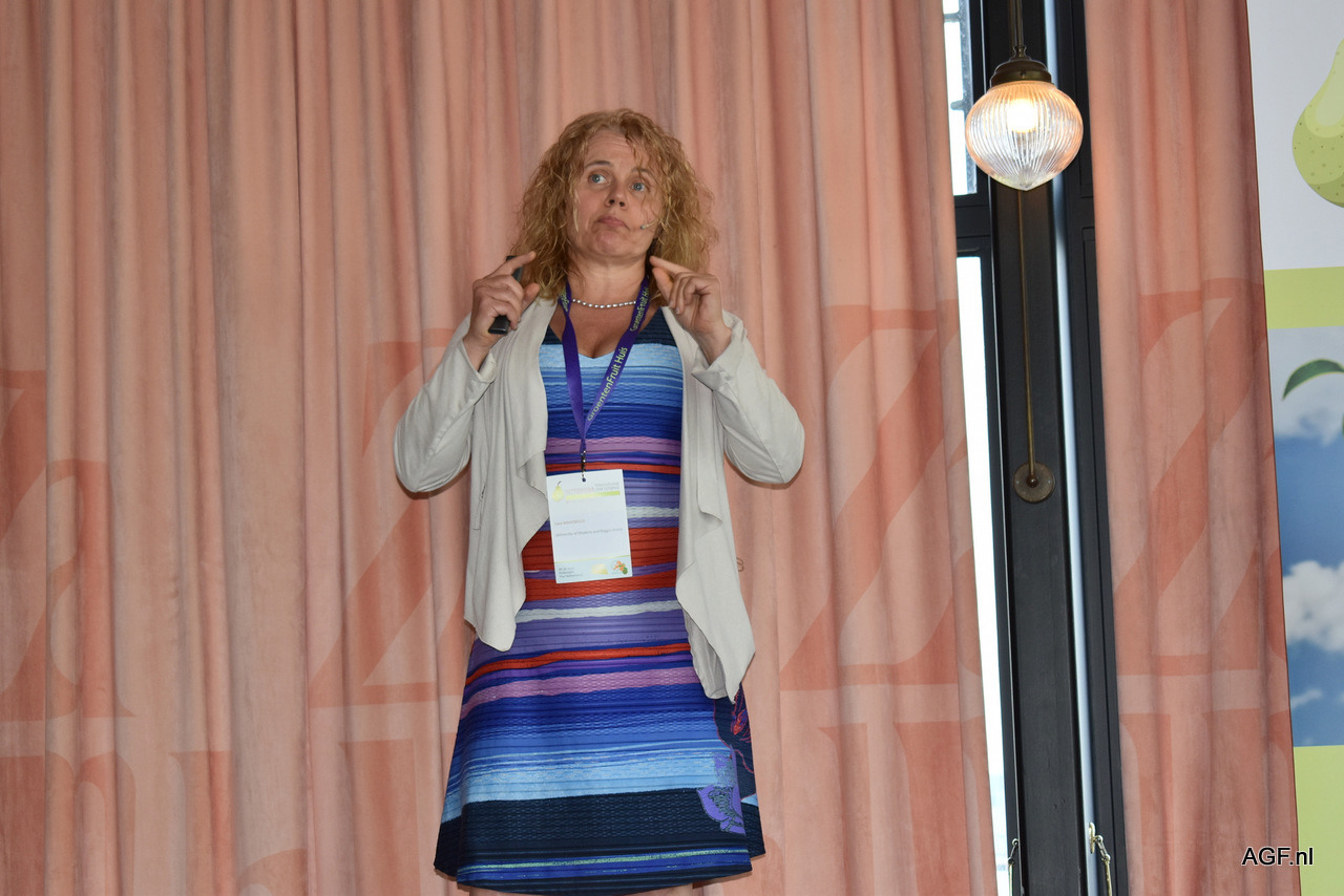 Cindy van Rijswick van Rabobank hield het publiek voor dat er over peren een positief verhaal te vertellen valt, maar dan moet het wel verteld worden.
