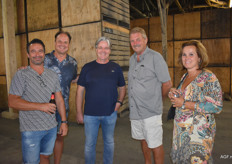 Jan Franje, Nico Overduin (Tuns), Mees Joostens, Aad Veenman (Poton Overseas) en Ineke Franje