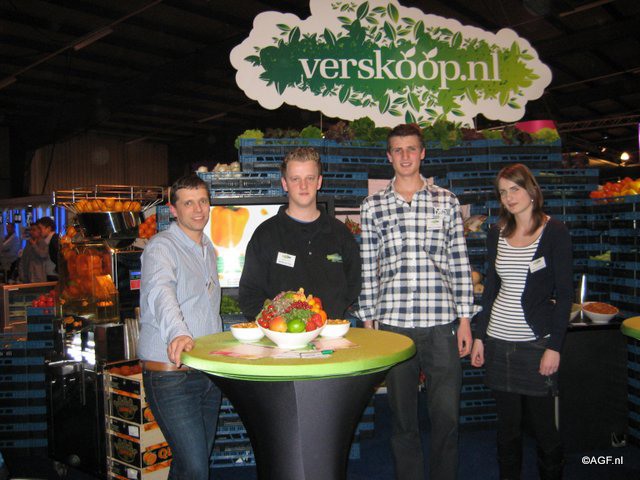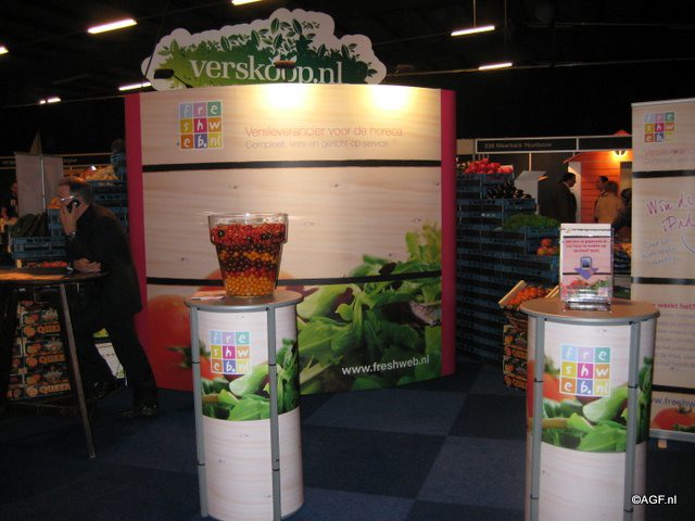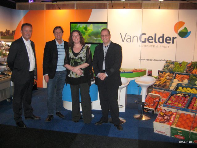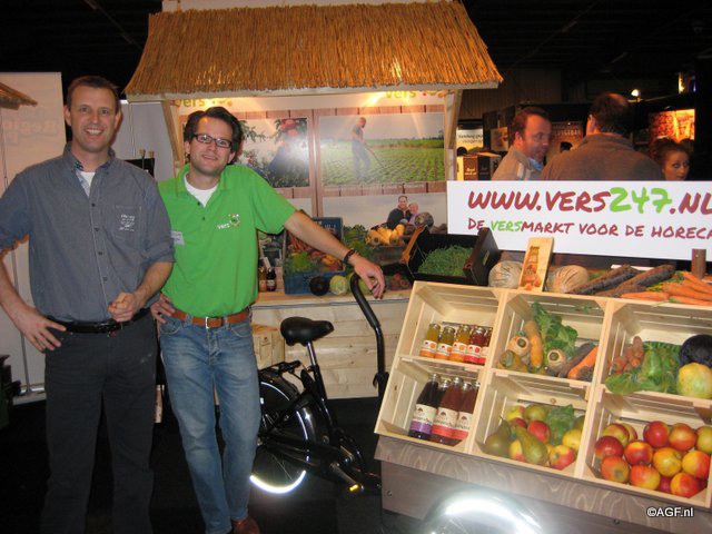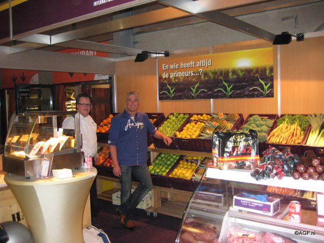 Jaap de Cock van Vion en Edwin Dam van Hanos poseerden bij de agf-uitstalling van Hanos