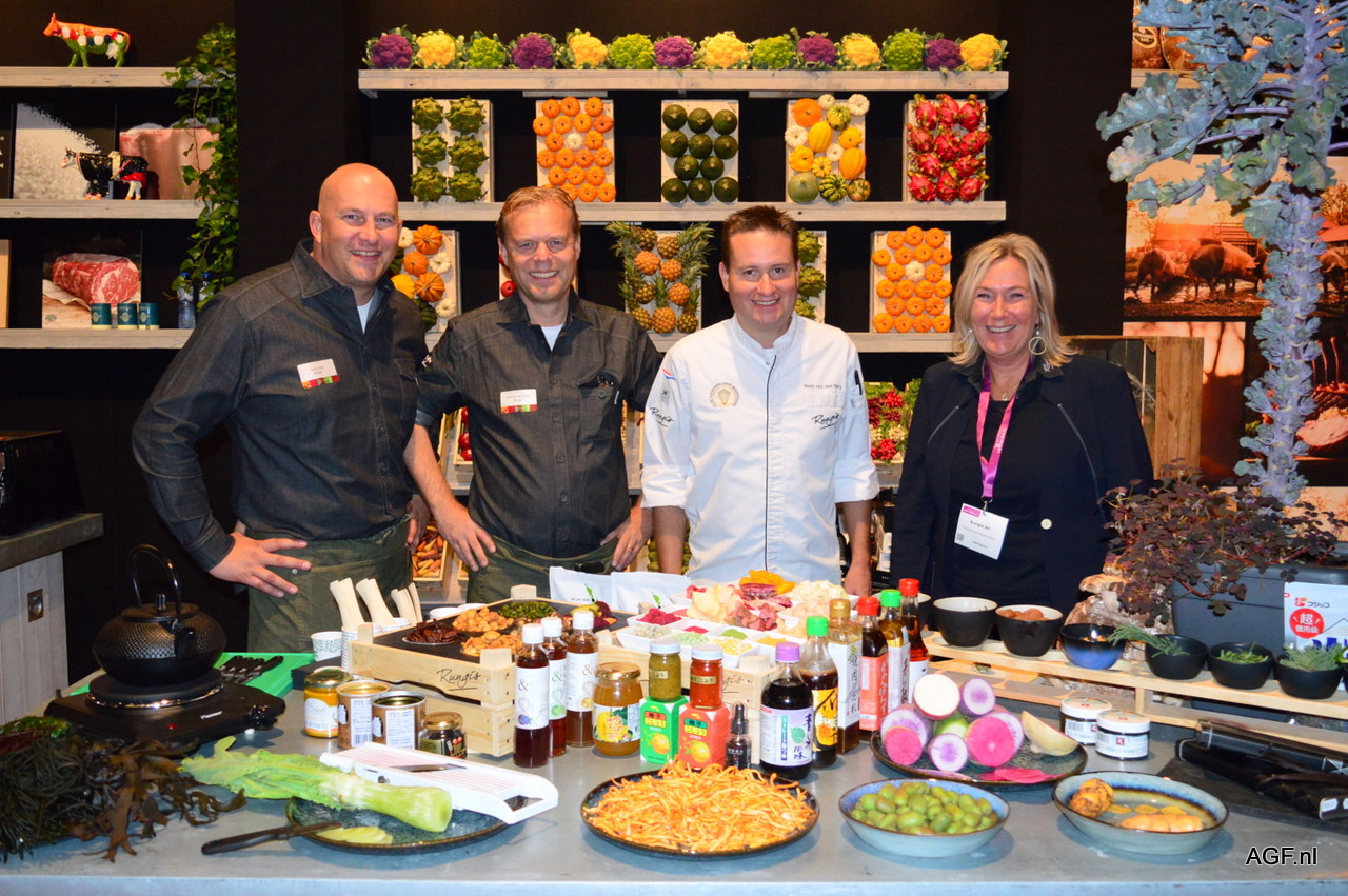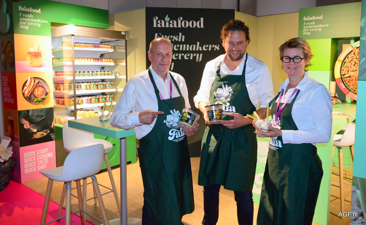 Peter Goede, Sander KLeinjan en Yolanda van der Jagt van Faiafood. Biesheuvel Knoflook, Waterman Onions, Sawari Fresh International en Roussel uit België zijn de leveranciers van grondstoffen aan Faiafood.