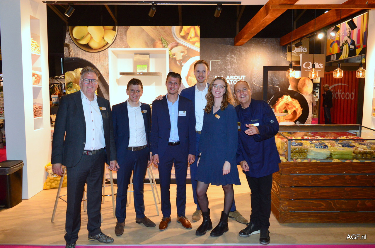 Kees van Veldhoven, Marco van Helden, Winston de Haas, Arjen Eerbeek, Fanny Prins en Kees van der Burg van Quiks Quality Potatoes. Er was zelfs een klein feestje op de beurs want Kees van der Burg was jarig. Hij werd 26 of was het 62?