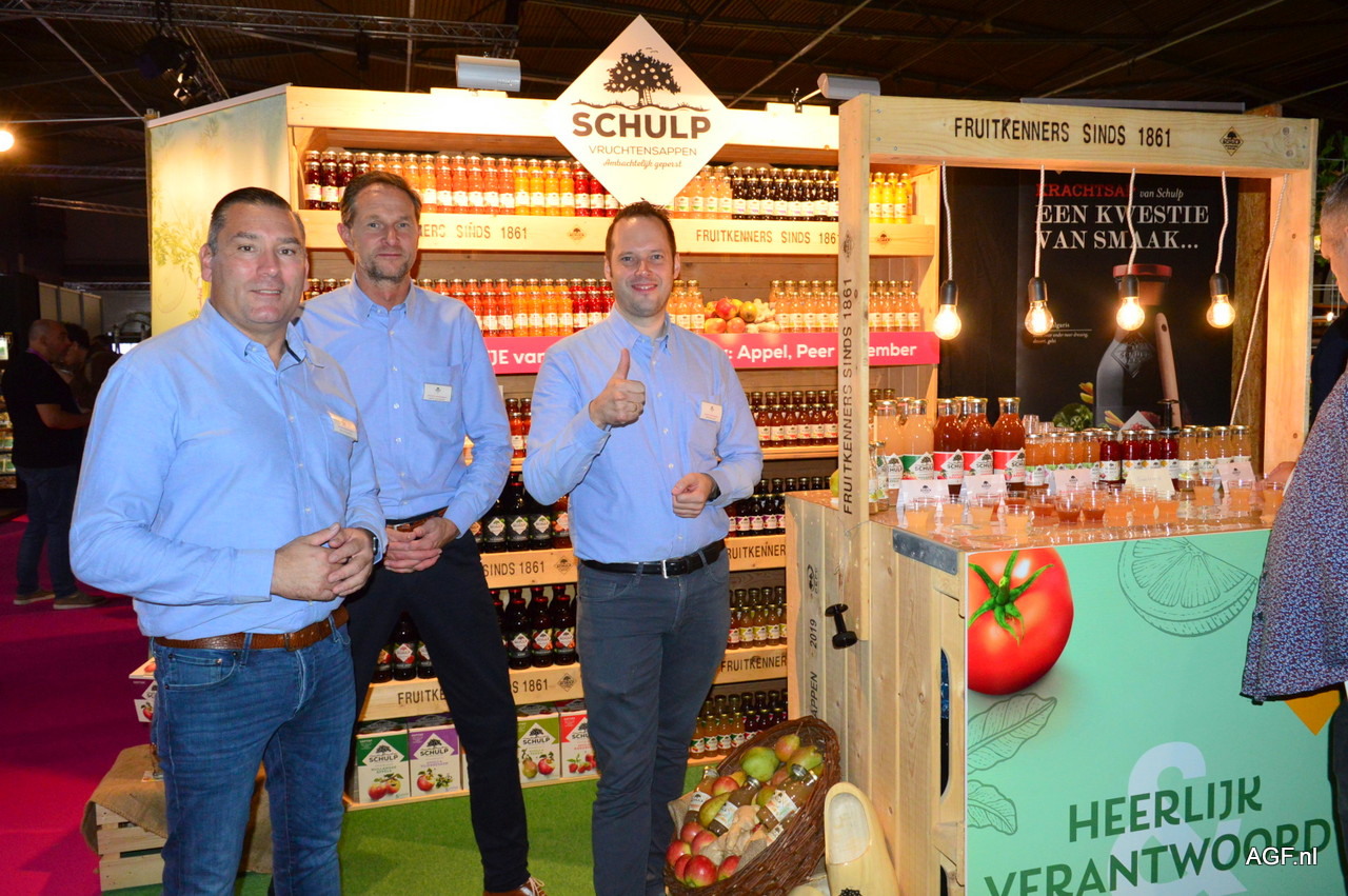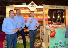 Richard Budding en Gerrit-Jan Schulp en Wilfred de Heer van Schulp Vruchtensappen. Nieuw in het assortiment de smaak appel/peer/gember.