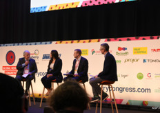 Een paneldiscussie tussen Jose Gandia, (SAT Royal), Lisette Holmberg (ICA) en Jonathan Lock (Marks & Spencer) begeleidt door Mike Knowles (Fruitnet)