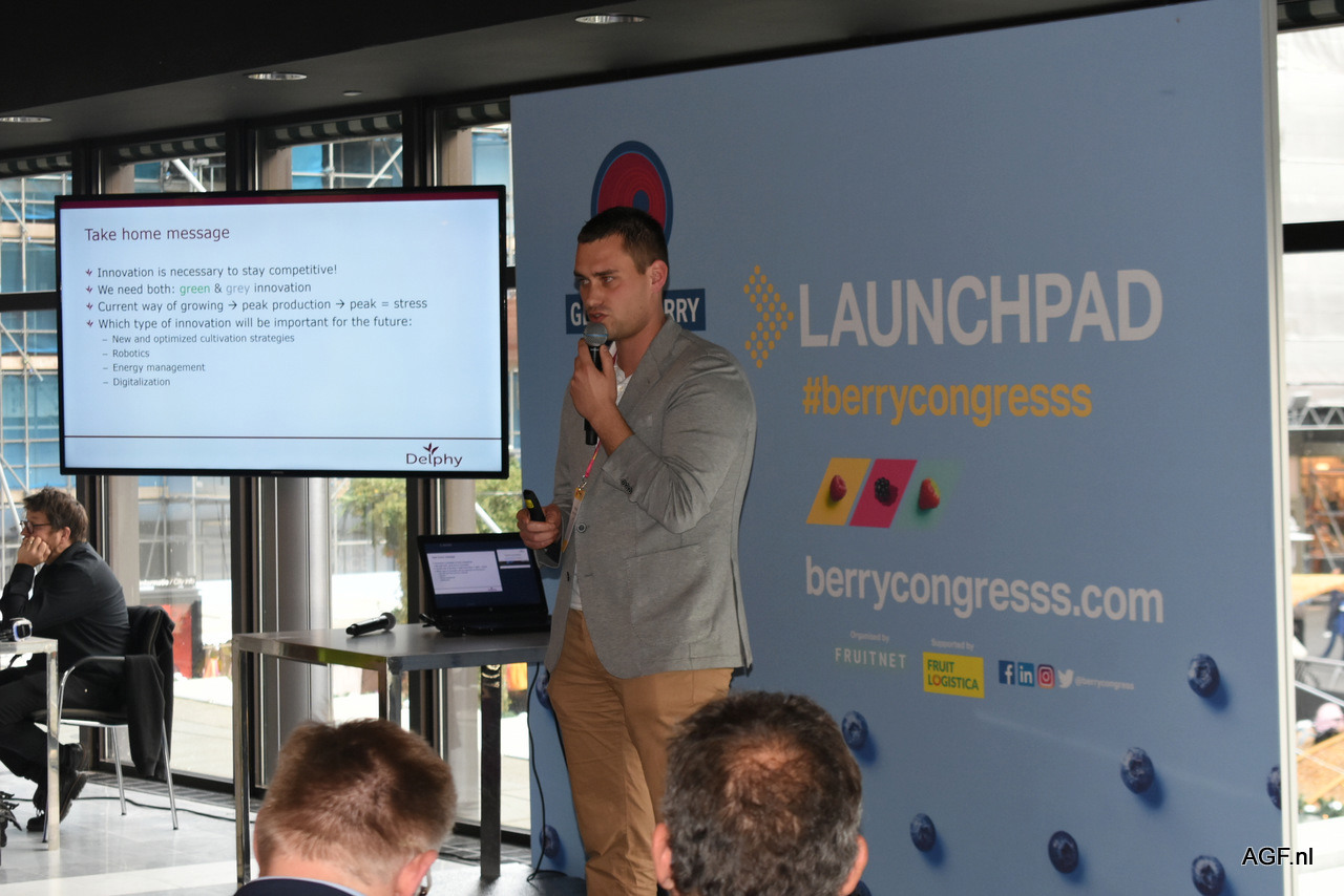 Bart Jongenelen van Delphy gaf een lezing over de 'tech-driven' toekomst van de aardbeiteelt