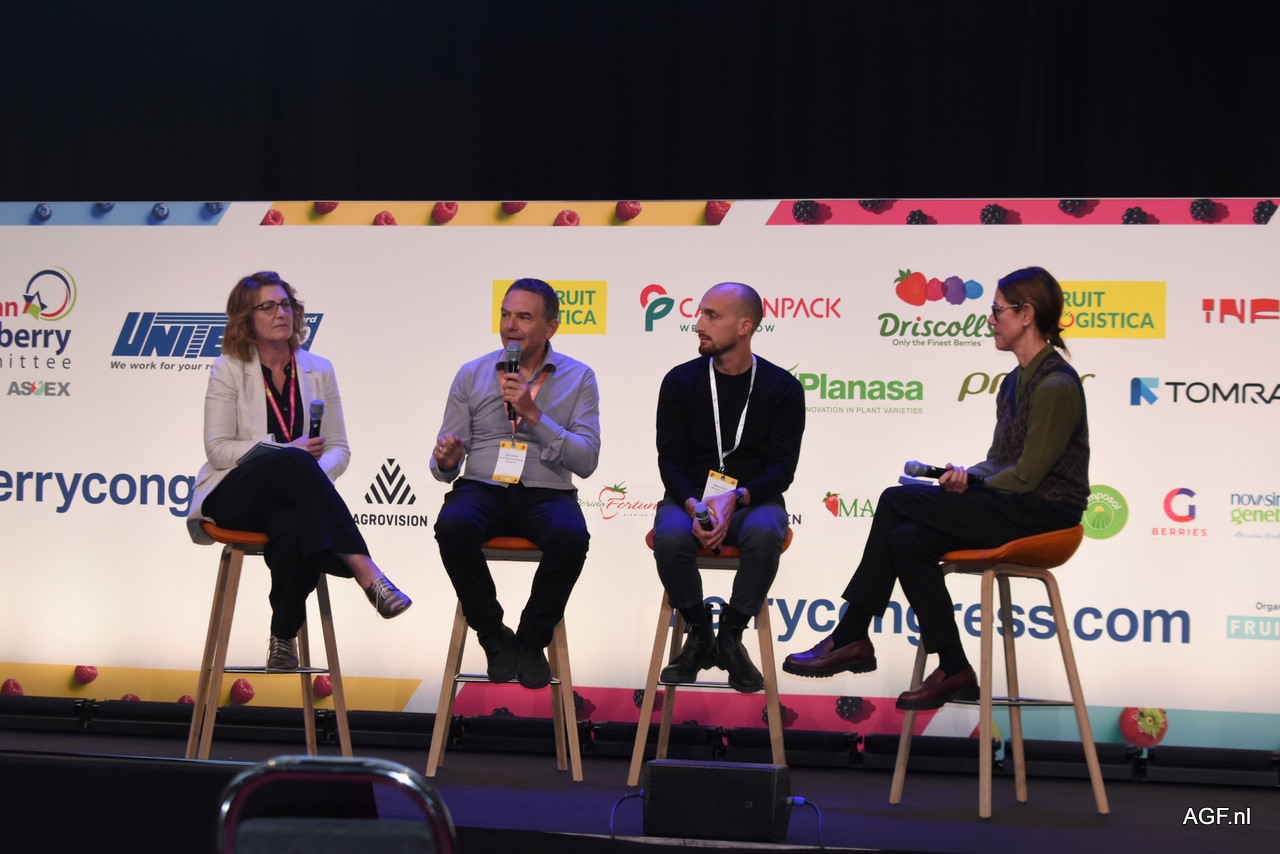 Een paneldiscussie tussen Kate James (VentureFruit), Hans Liekens (Sekoya) en Matteo Molari (G-Berries)