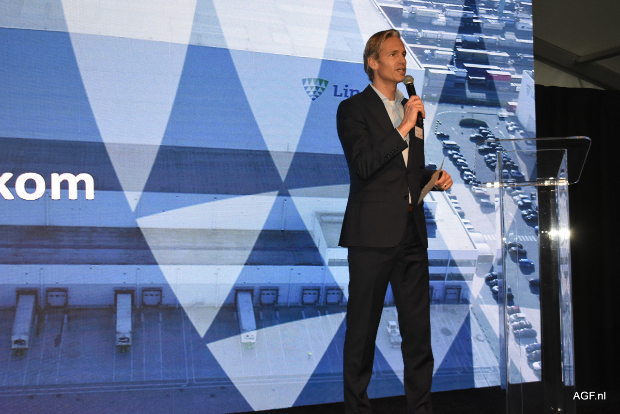 Derek Jan van Rees (Regional Director Of Operations van Lineage) verzorgde de omlijsting van het ceremoniële gedeelte