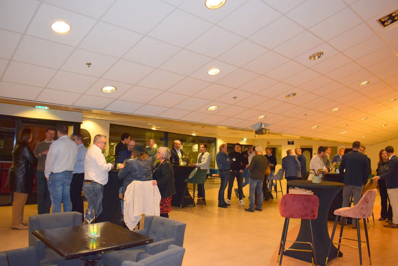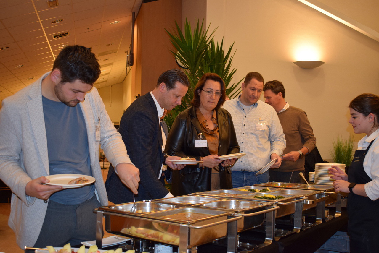 Dion Giesen, MIchel Geraedts, Sandra Bogaard, Wim Staay en Peter Vasen aan het afsluitende buffet