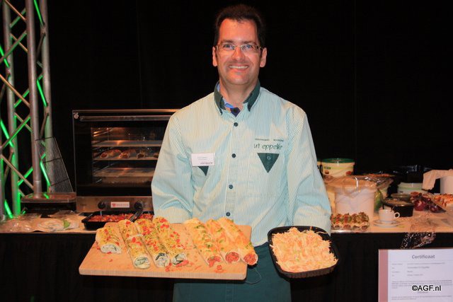 Dennis Zeegers laat met trots de zelfgemaakte schotel wraps zien.