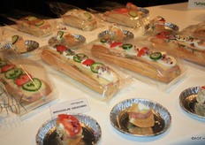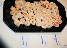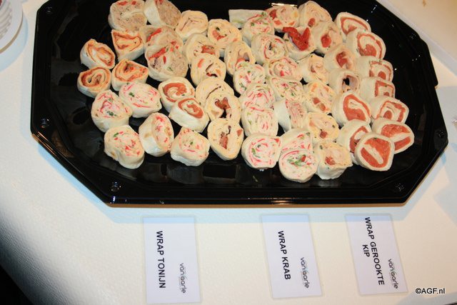 Dennis Zeegers van Slagerij Zeegers onderscheidt zich door andere producten aan te bieden dan alleen vlees en vleeswaren. Hier de wraps gerookte kip, wrap krab en wrap tonijn.