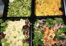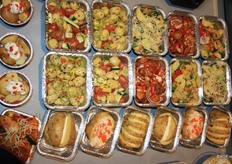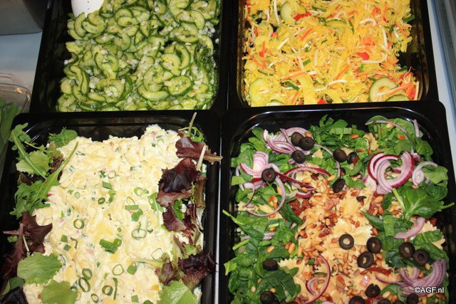 De saladebar wordt in de ochtend gevuld met 28 verschillende soorten ingrediënten.