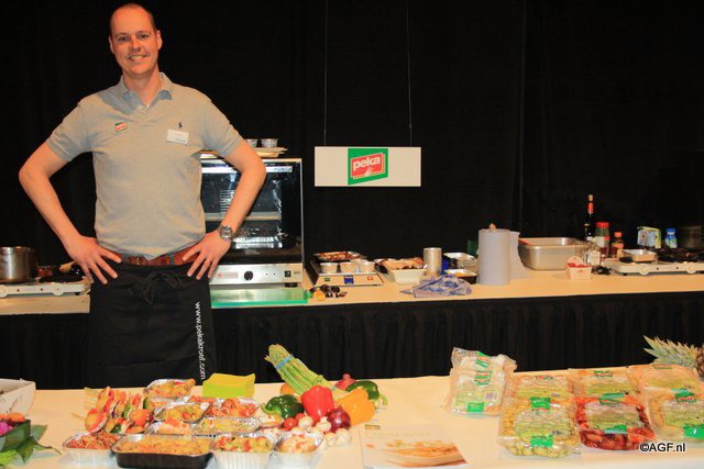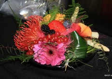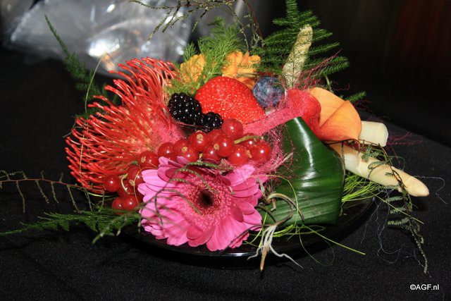 Zelfs over de bloemdecoratie kun je nadenken als detaillist, verwerk groenten en fruit in de bloemstukjes.