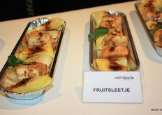 "Frank van der Werf bedenkt zelf ook vele recepten die verkrijgbaar zijn bij Bonfait. Frank: "Je kunt een product al onderscheidend maken door er een naam aan te geven en iets toe te voegen, zoals hier het Fruitje Met"."