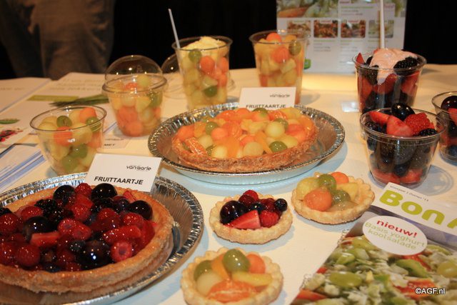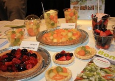 Bonfait staat bekend om haar productie en verkoop van koelverse maaltijden, maaltijdcomponenten, (pasta)salades, soepen, en sauzen. Hier twee fruittaartjes met vers fruit.
