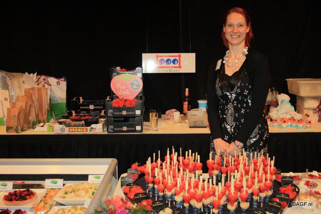 Marielle Adriaans van Adriaans Groente en Fruit in Helmond onderscheidt zich door in te spelen op o.a. actualiteiten en toetjes met vers fruit.