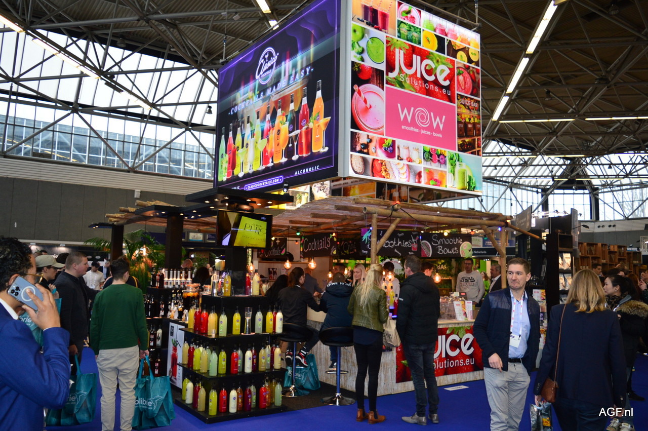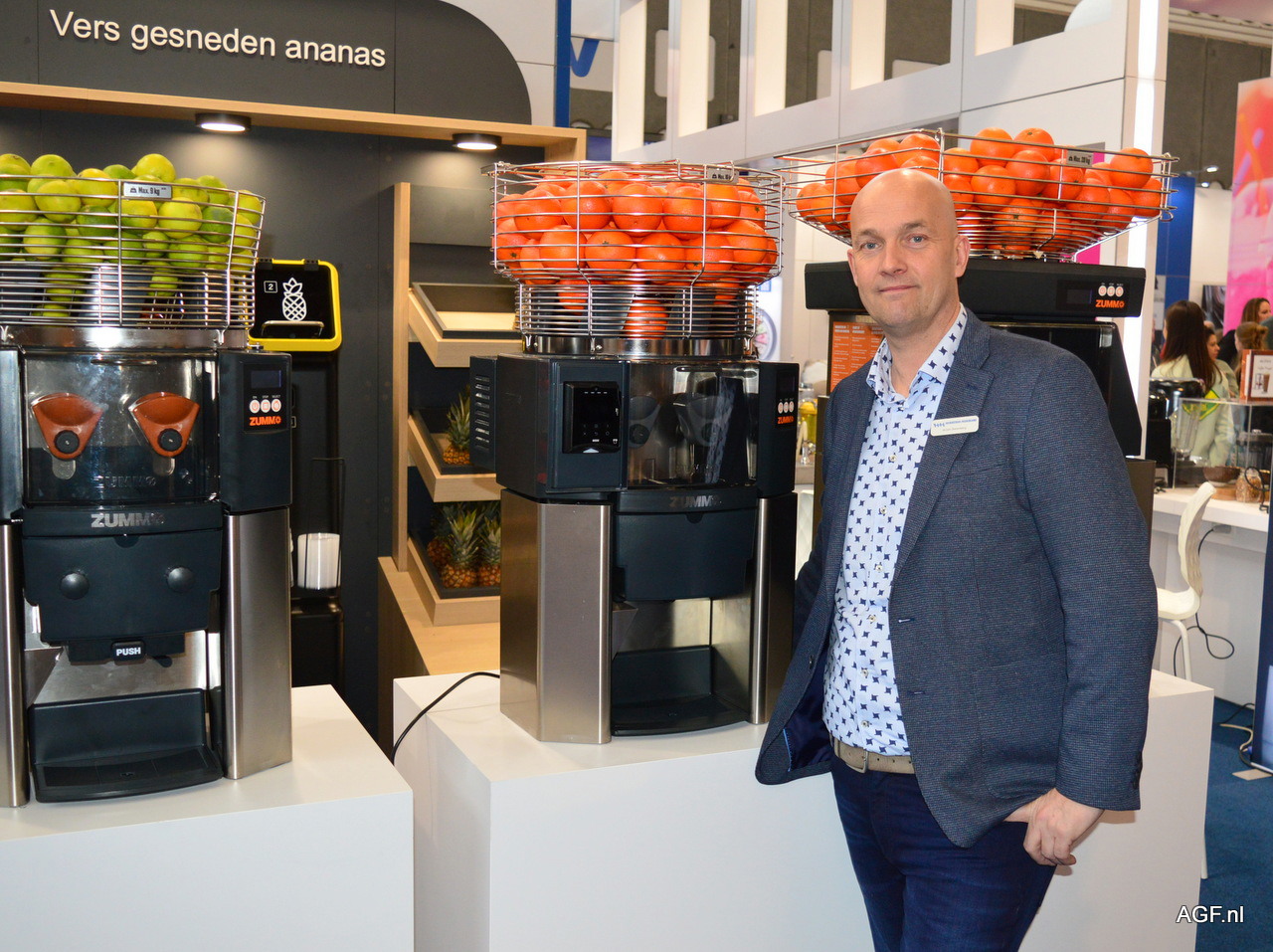 Dietrich Zaaijer en Mariska Zaaijer van Zumex Nederland. Bij de Wall of Juice.