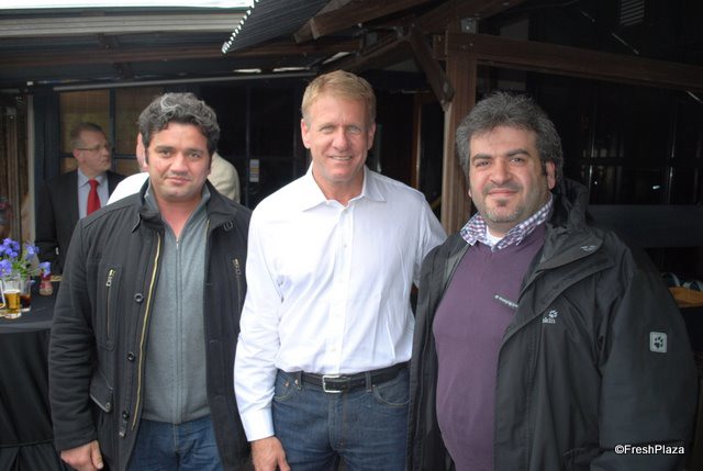 Tomer Ezra de nieuwe Manager Director van Mehadrin Nederland samen met Marco Slingerland (Olympic Food logistics) en Maarten van Fraassen (DSI)