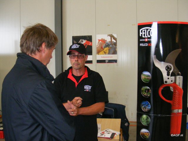 Collega van Felco, leverancier van snoeischaren, geeft uitleg aan een teler