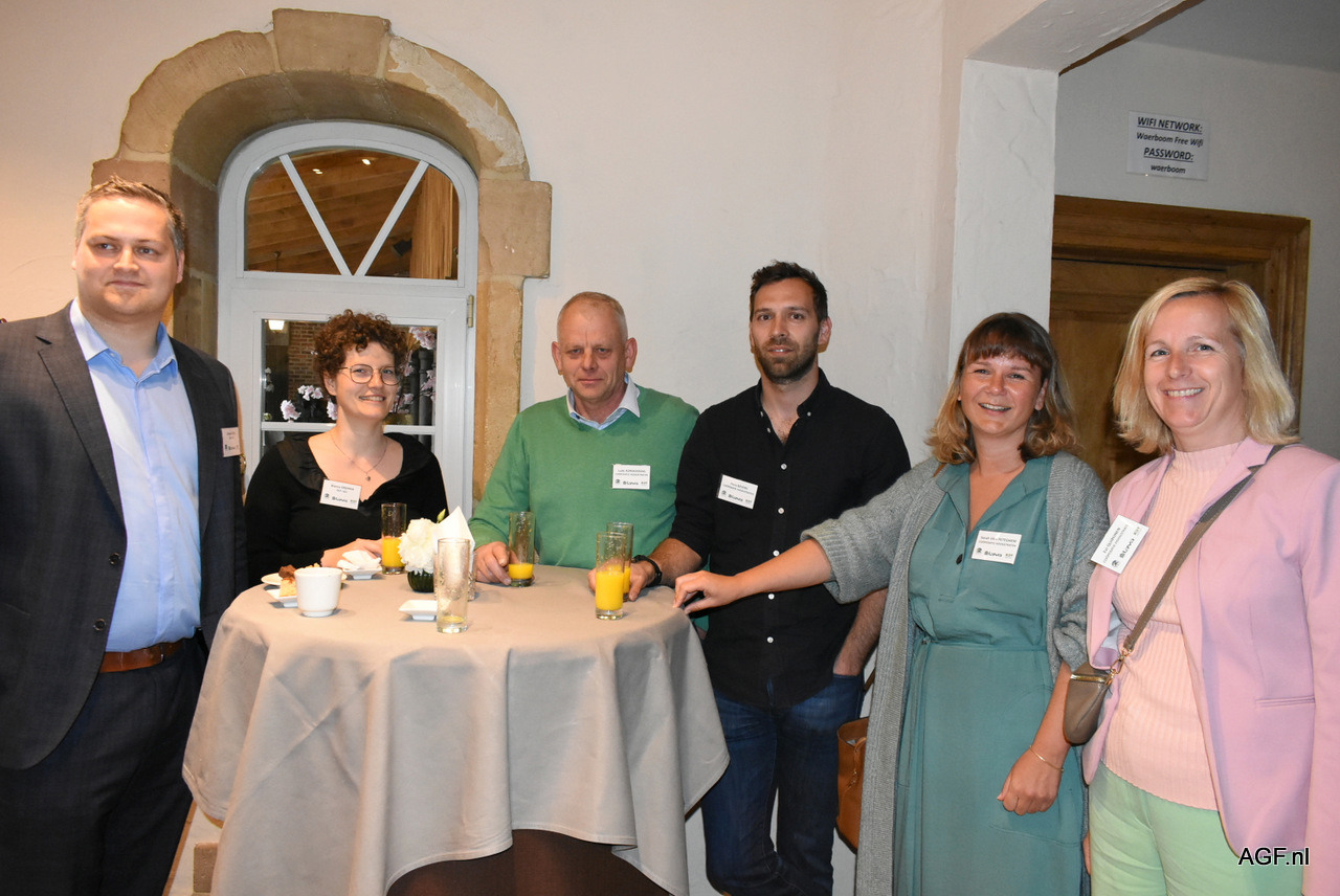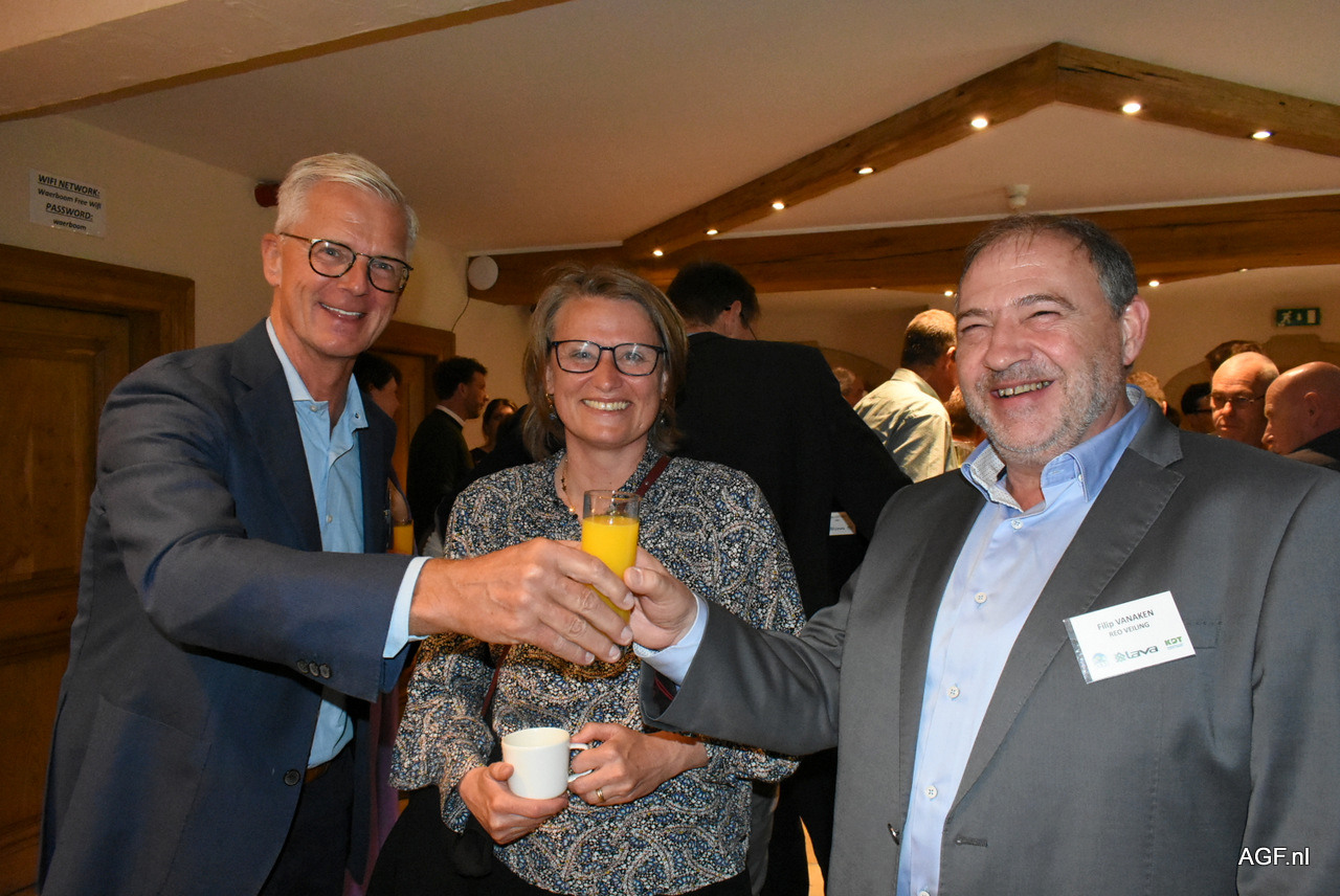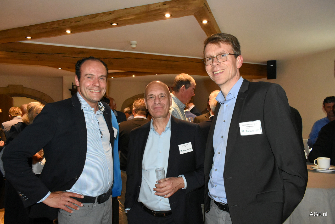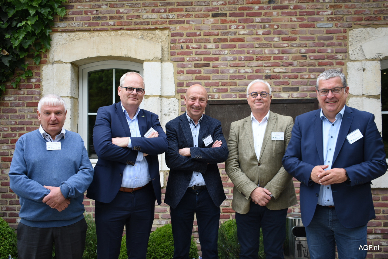 Voorafgaand maken Dirk Van Den Plas, Hans Vanderhallen (Coöperatie Hoogstraten), Maarten De Moor (LAVA), Guy Callebaut (Global G.A.P.) en Luc Vanoirbeek (VBT) een praatje in het zonnetje