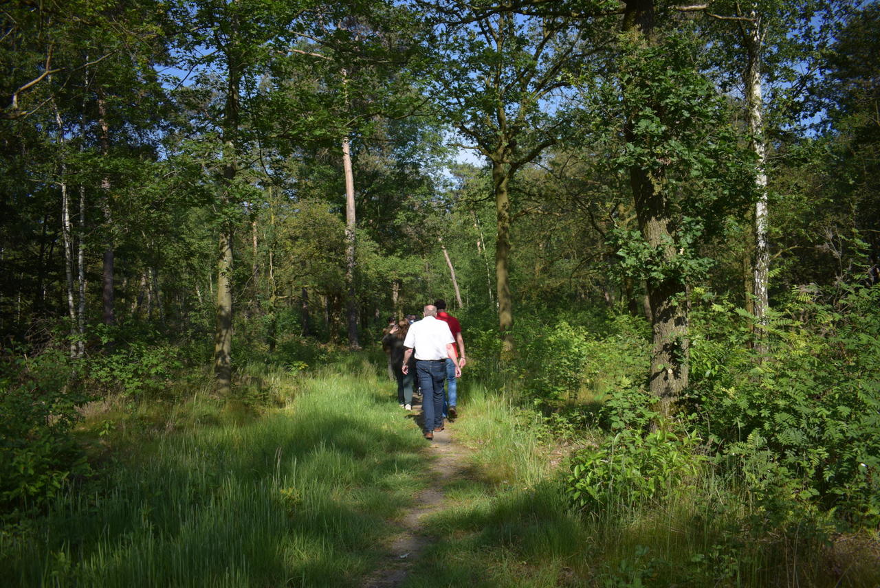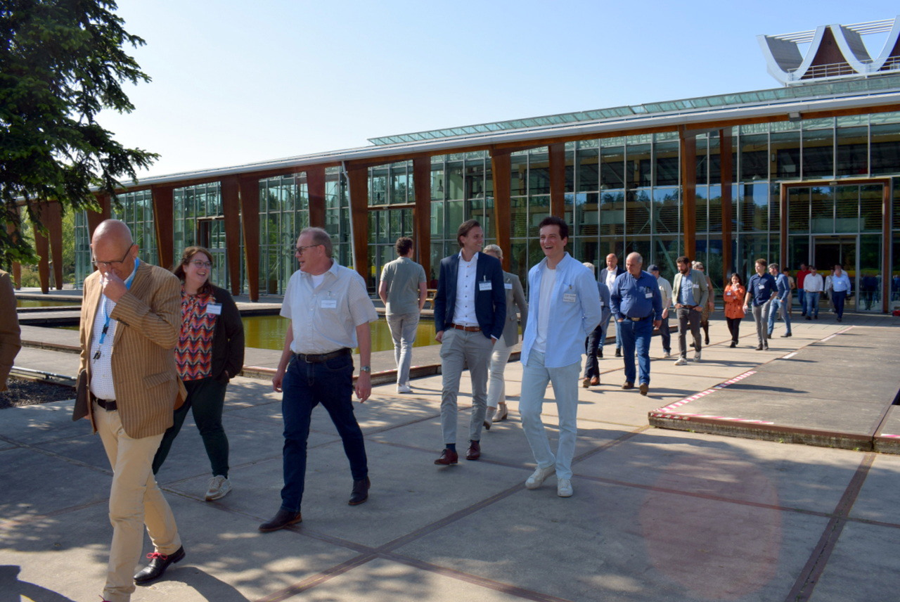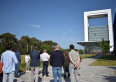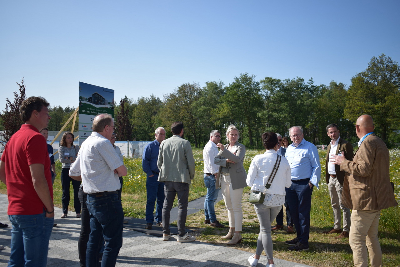 Joland Slangen (voorop) leidt de leden van de business club over het terrein van Brightlands Greenport Venlo