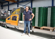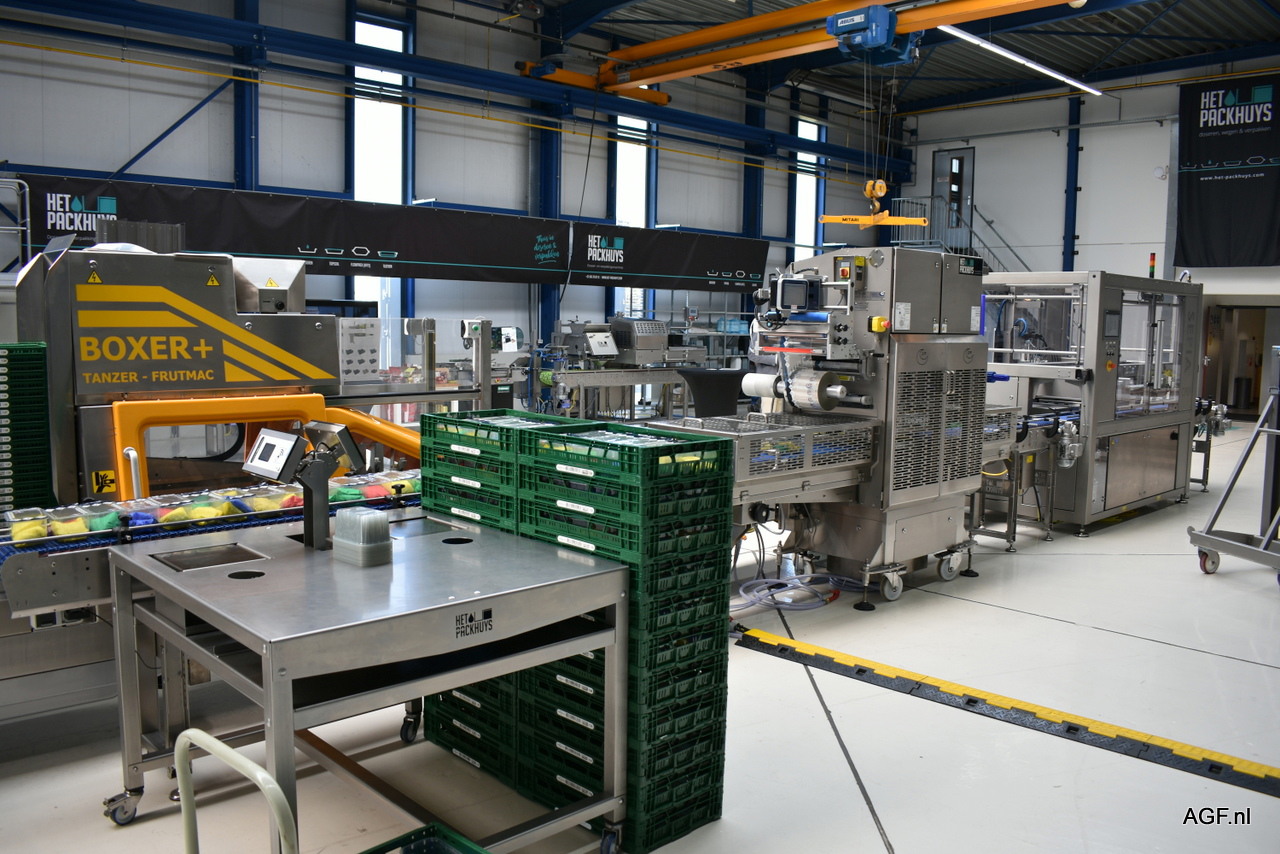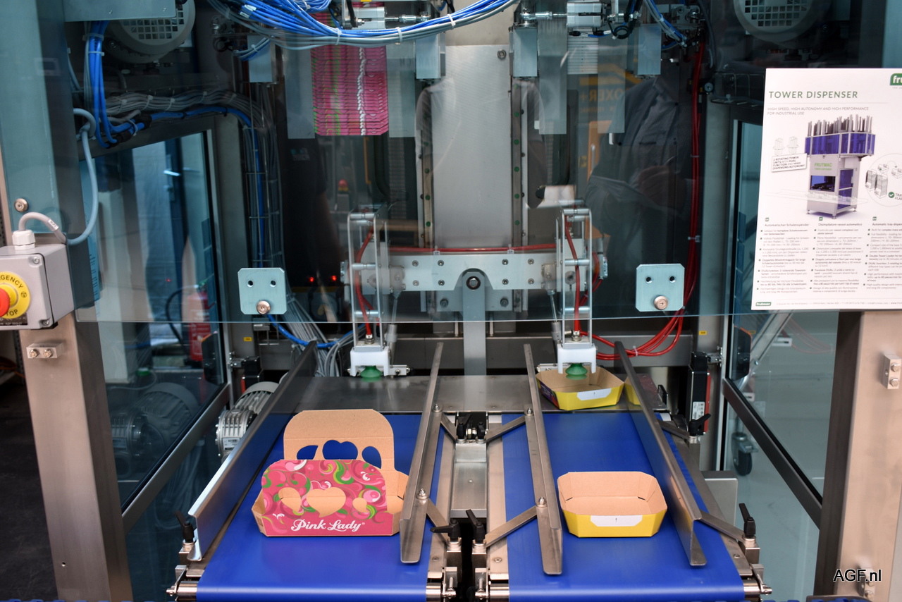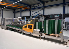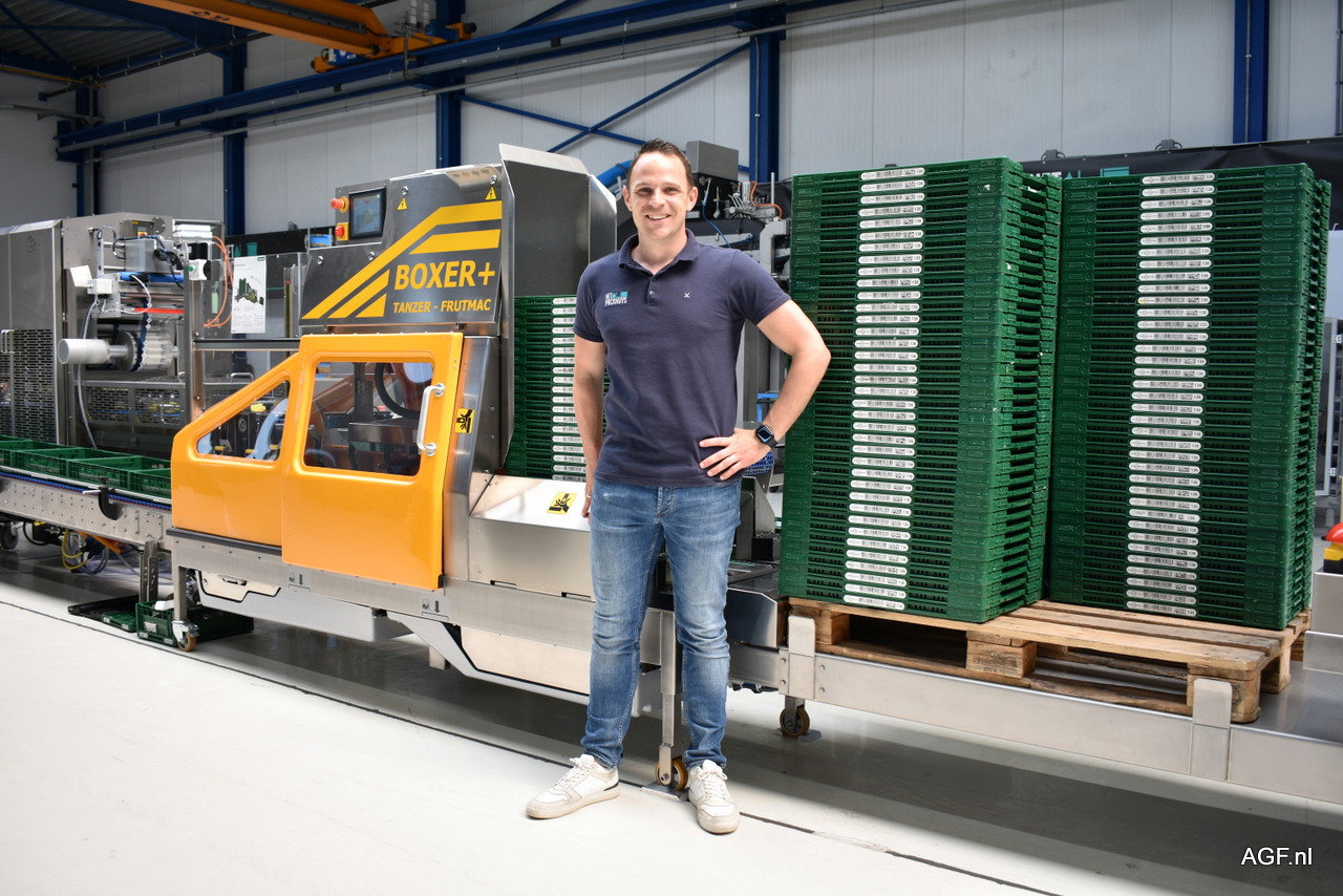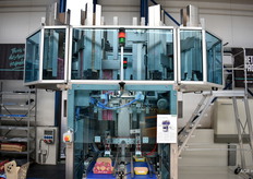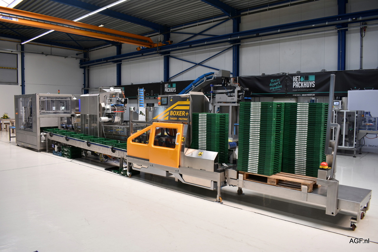Het paradepaardje op het evenement is de Boxer + van Frutmac. Een machine voor het automatisch stapelen en ontstapelen en uitvouwen van klapkratten met een capaciteit van 1100 kisten per uur