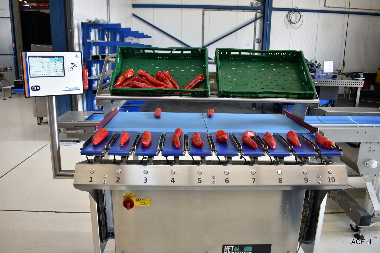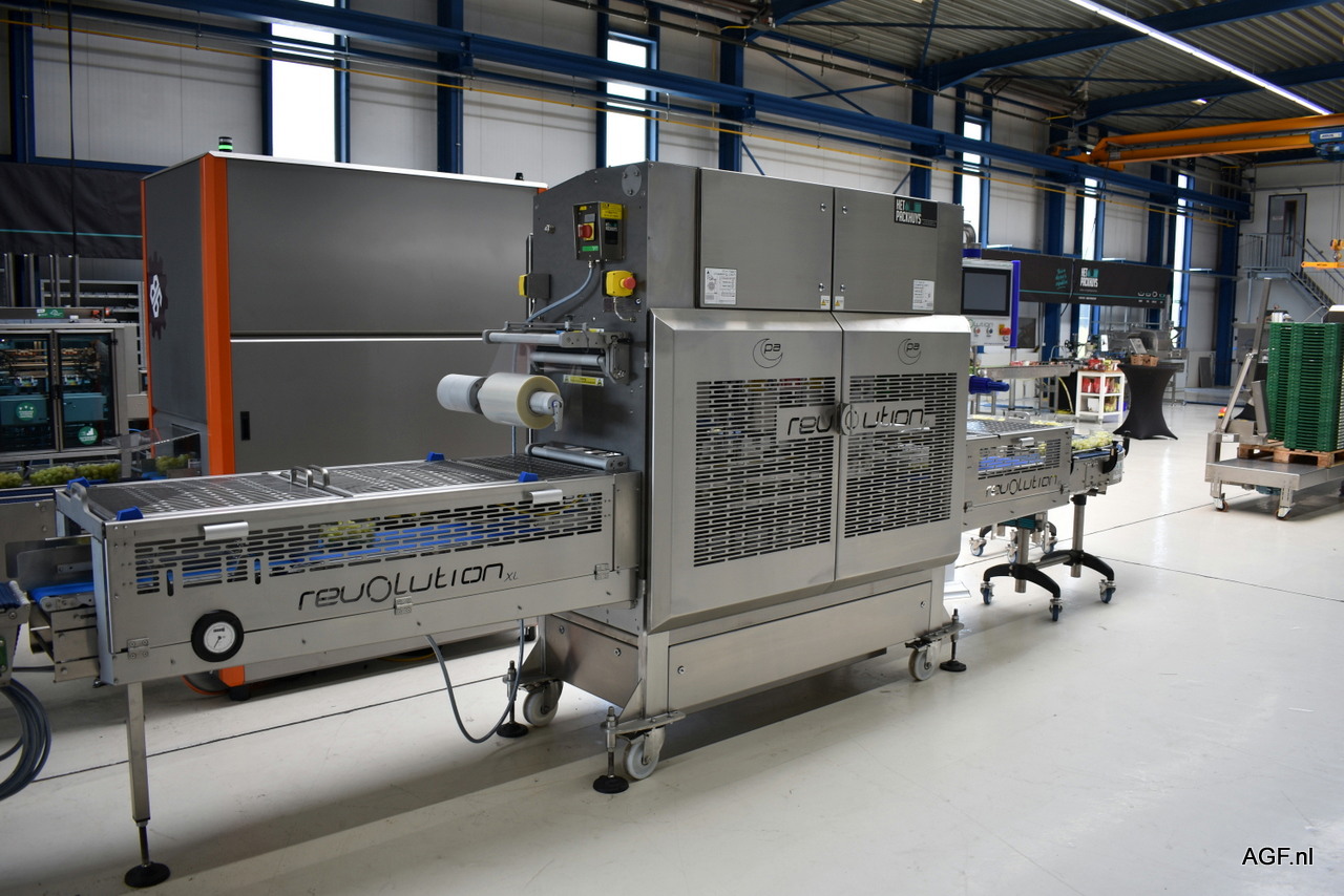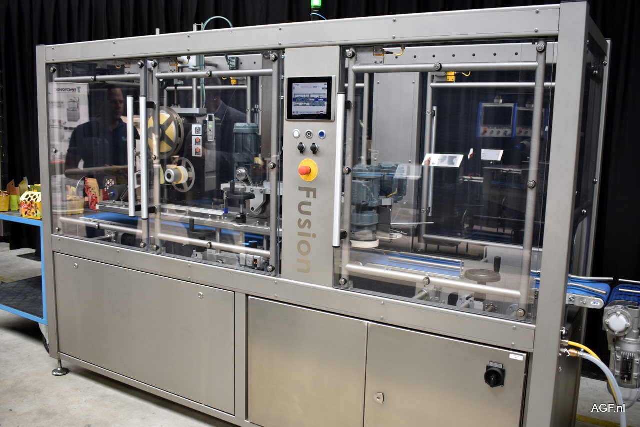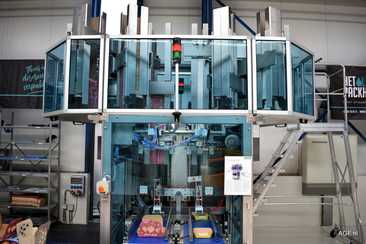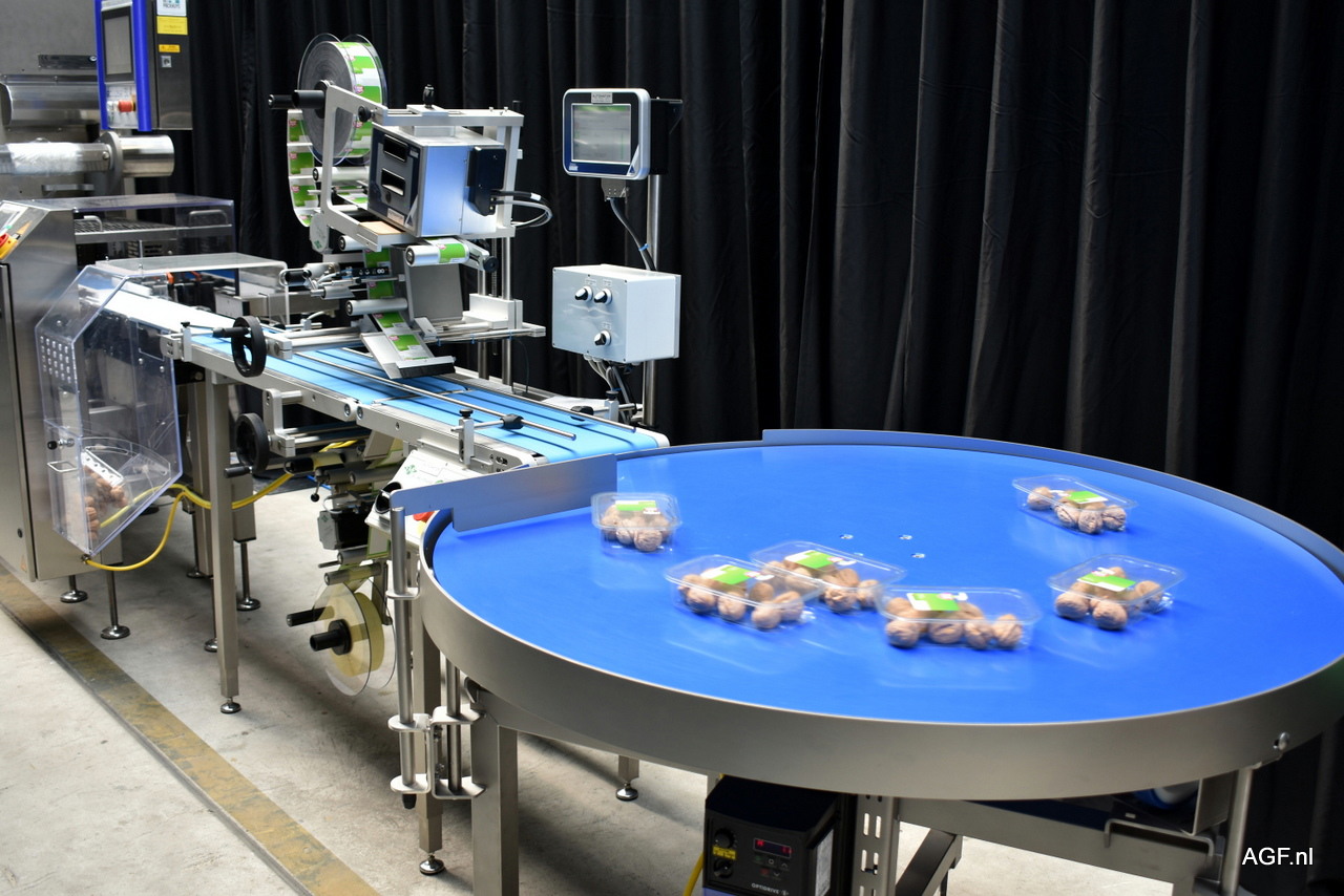 Aan het einde staat de Frutmac Blitzmatic+ om de schalen te sluiten.