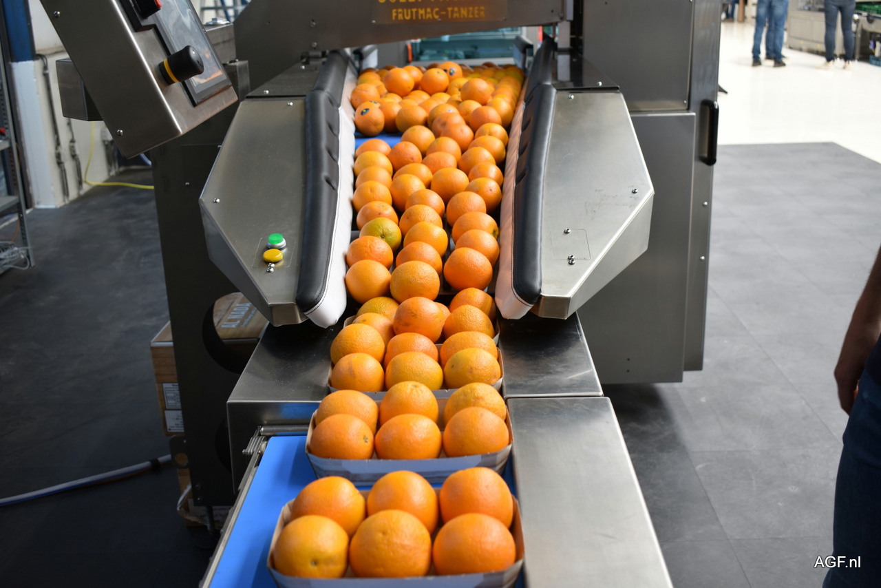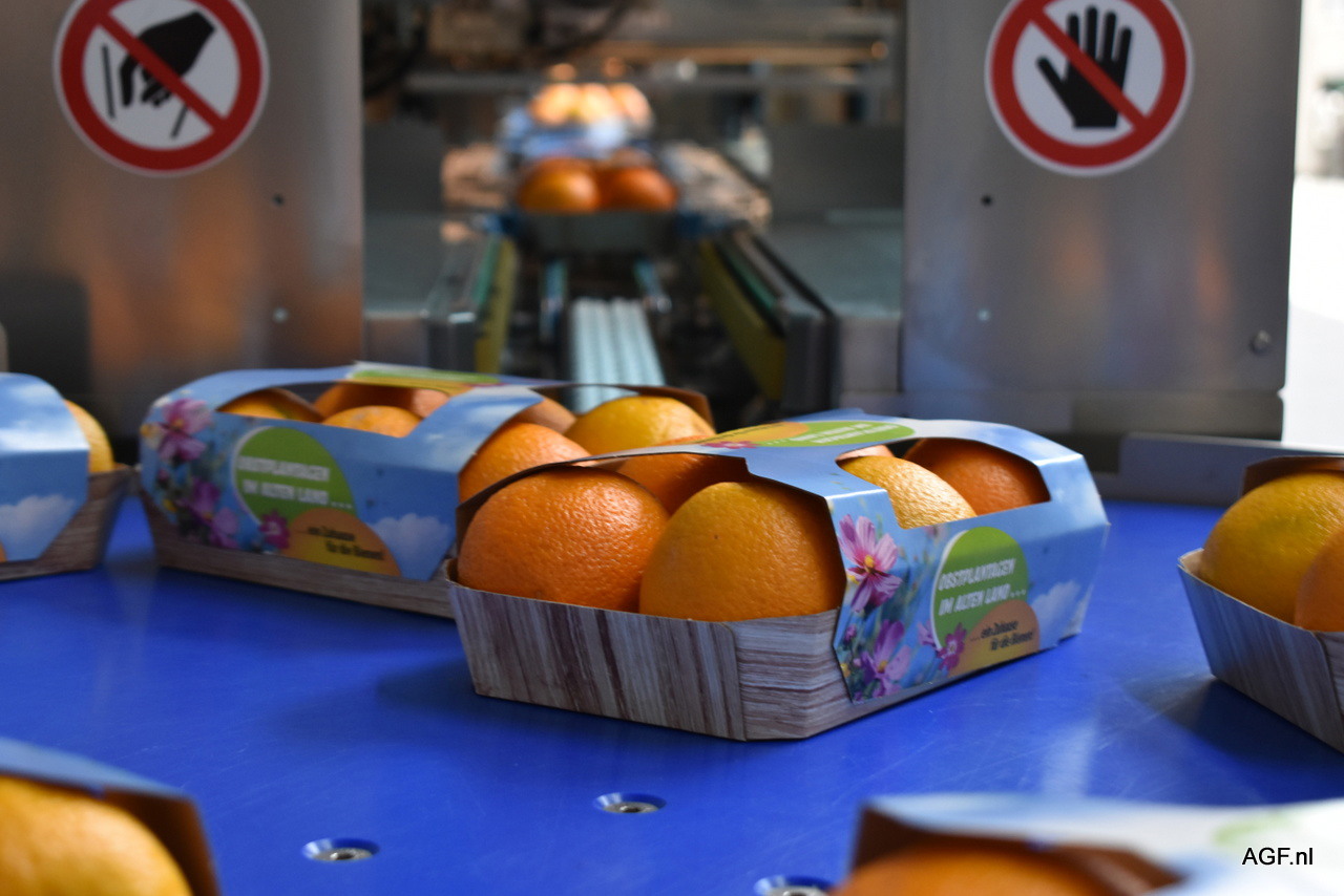 De Jollypack G5, een automatisch tray vul systeem voor ronde producten zoals sinaasappelen, appel, tomaat, kiwi.