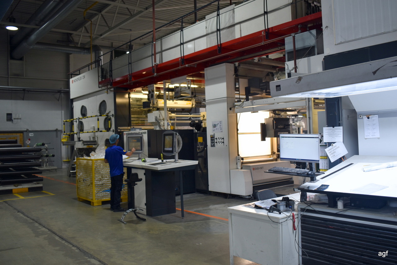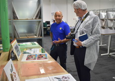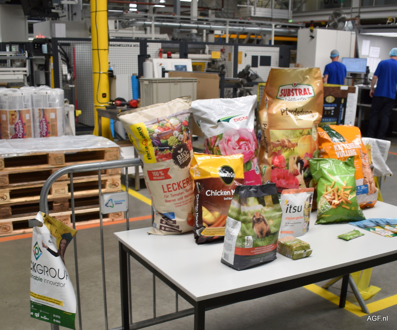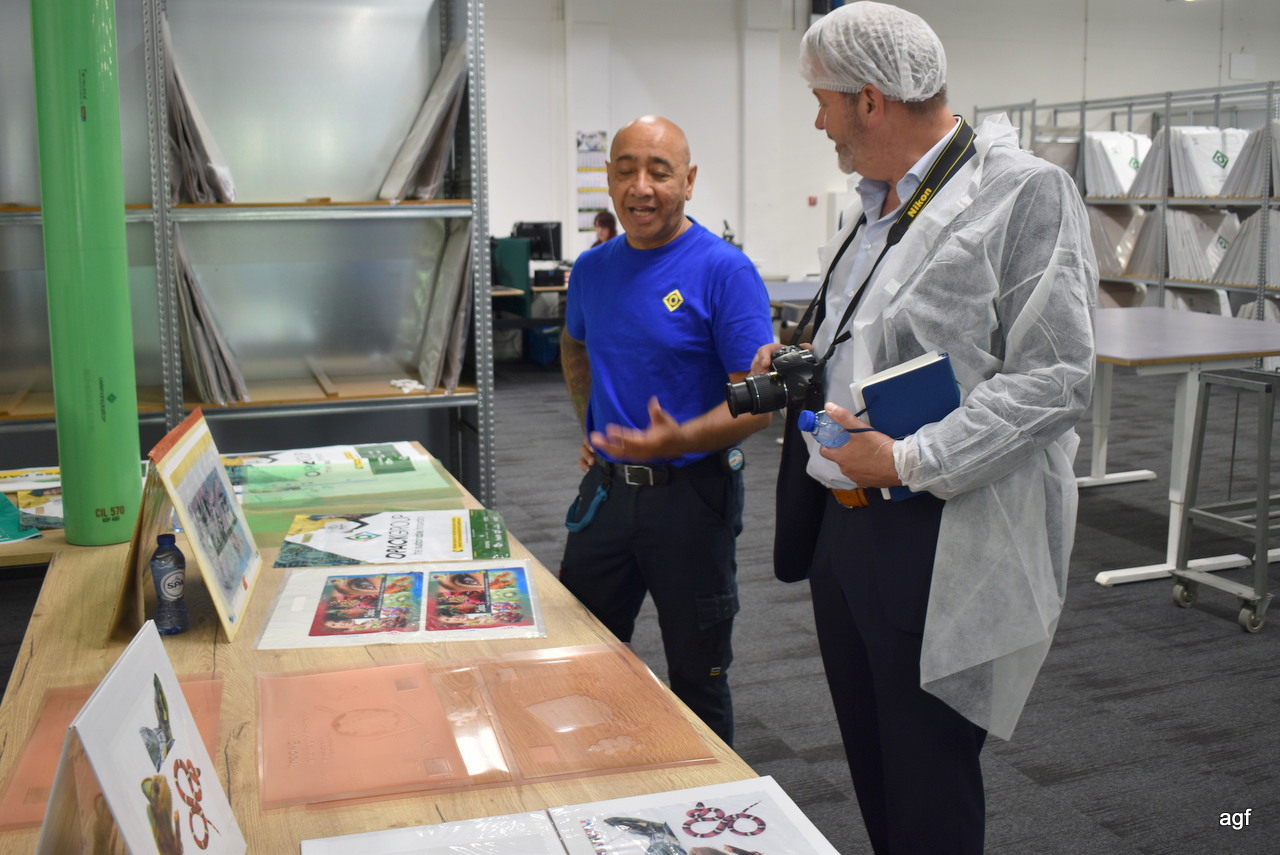 Andries Gunter krijgt uitleg over de print methode op de verschillende verpakkingen.